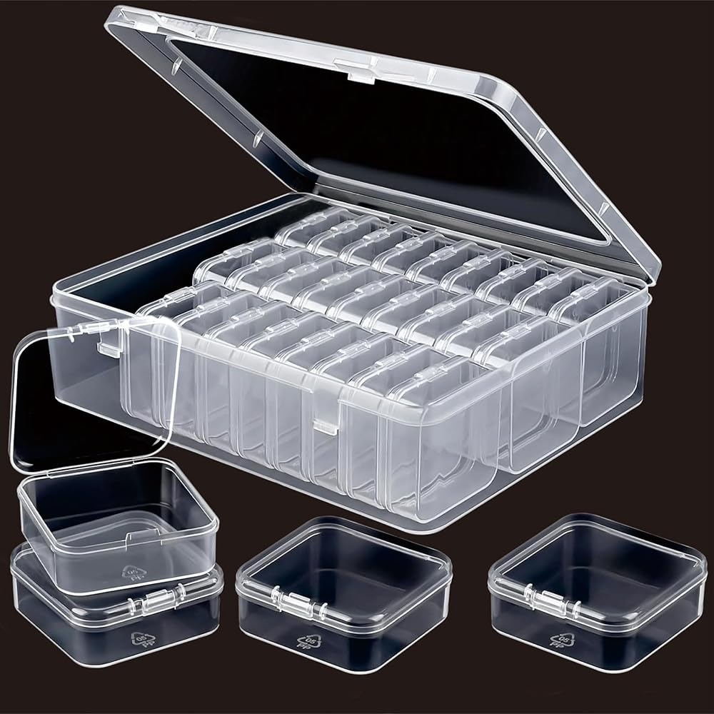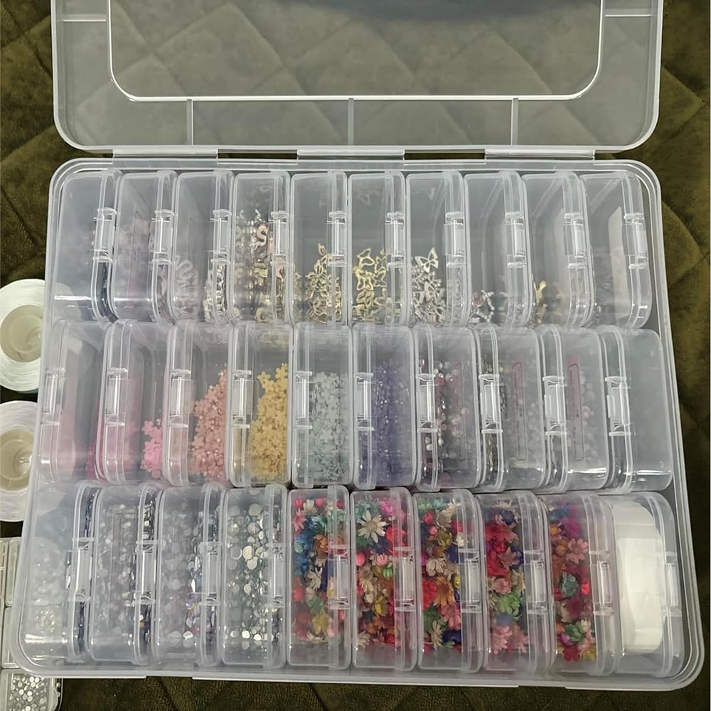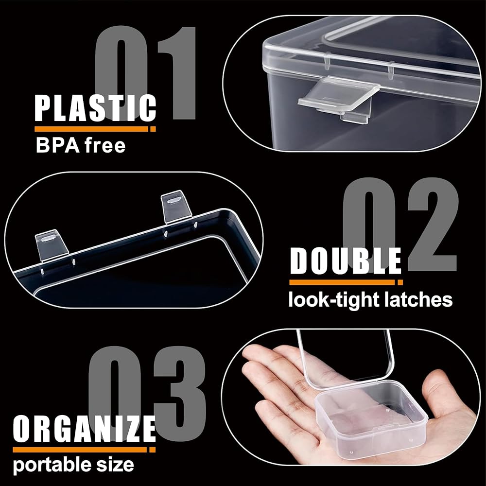 تصميم مفيد: يحتوي كل صندوق شفاف على غطاء مفصلي، والذي يمكن أن يمنع أغراضك من التلوث بالغبار والأوساخ، كما يمنع العناصر من السقوط. مع ميزات السلامة الجيدة، يمكنك استخدام هذه الصناديق لحمل الخرز الصغير أو المجوهرات الخاصة بك في أي مكان.
