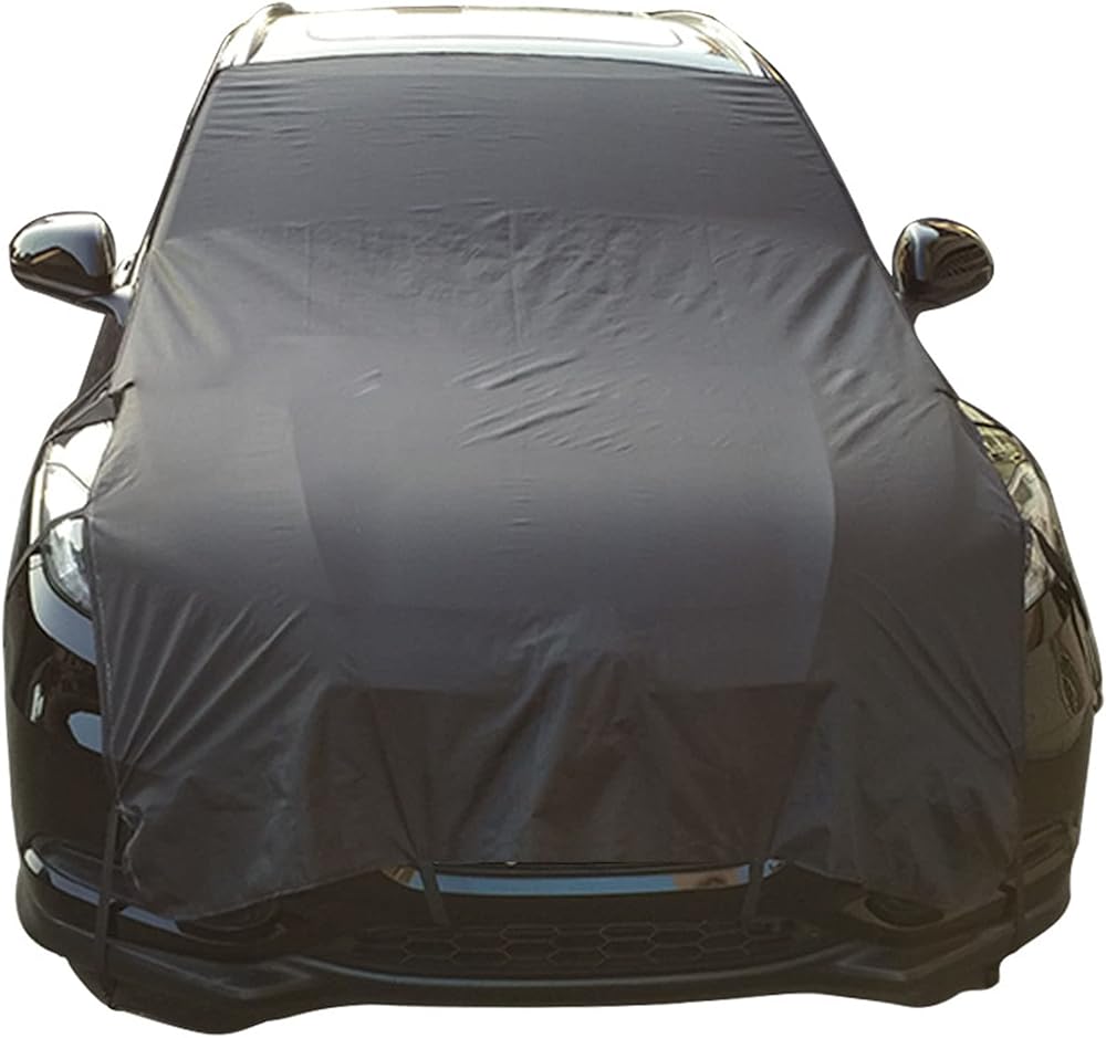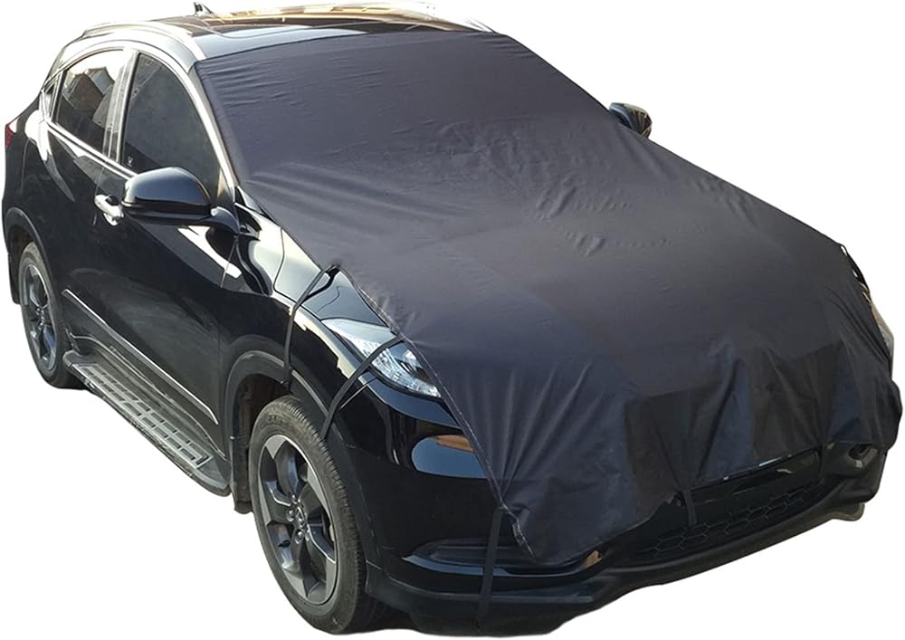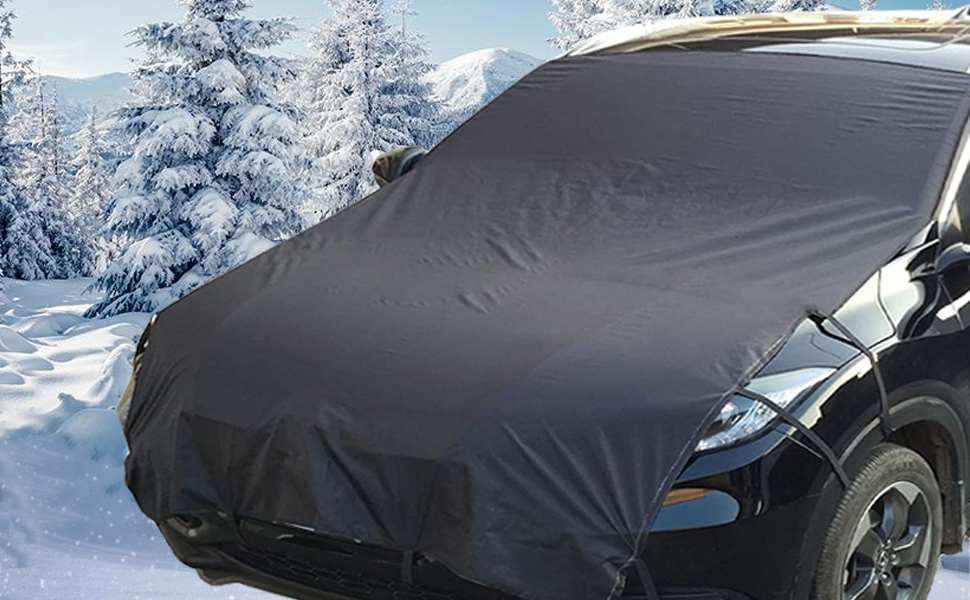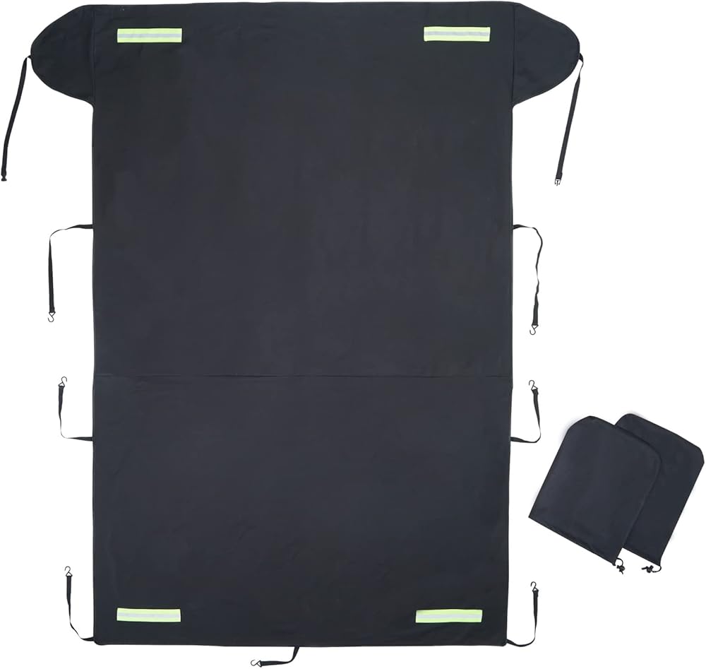 سهل التركيب - قم بالتركيب والإزالة في ثوانٍ. افتح غطاء الزجاج الأمامي بالكامل ليغطي الزجاج الأمامي والمحرك بالكامل. كل ما عليك فعله هو تعليق الأربطة المرنة على المرايا الجانبية الخلفية والخطافات المثبتة على عجلاتك.