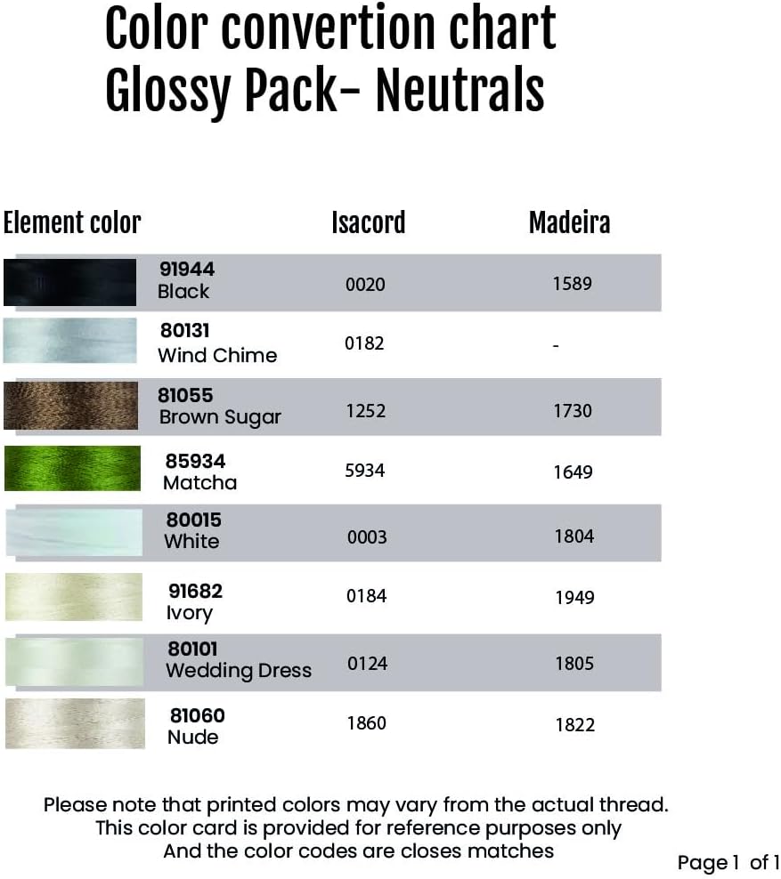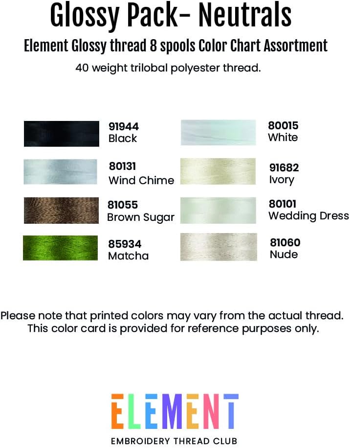 عنصر حزمة الألوان المحايدة | صينية 8 مكبات | ماكينة تطريز بالخيط | 1000 م | 40 بالوزن | لامعة | متوافقة مع ماكينات الخياطة Brother Babylock Janome Singer Pfaff Husqvarna Bernina