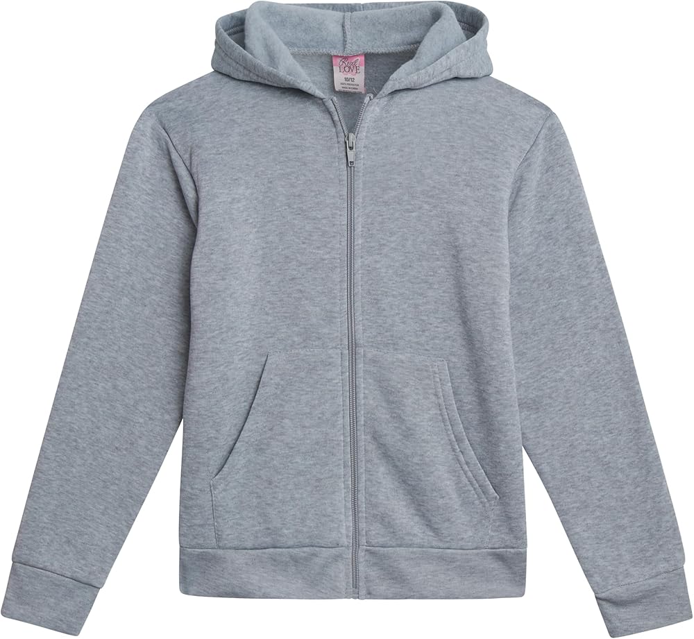 PERFECT FIT FOR GROWING GIRLS: Available in sizes 7-16, these full zip up hoodies are tailored to fit growing girls perfectly. Designed with a focus on comfort and ease of movement, these girls' outerwear jackets & coats offer a great fit for all body types. The cozy fleece hoodie material keeps her warm without overheating, making it an ideal choice for kids hoodies and active set collections. Choose Real Love for girls' sweatshirts that grow with her.