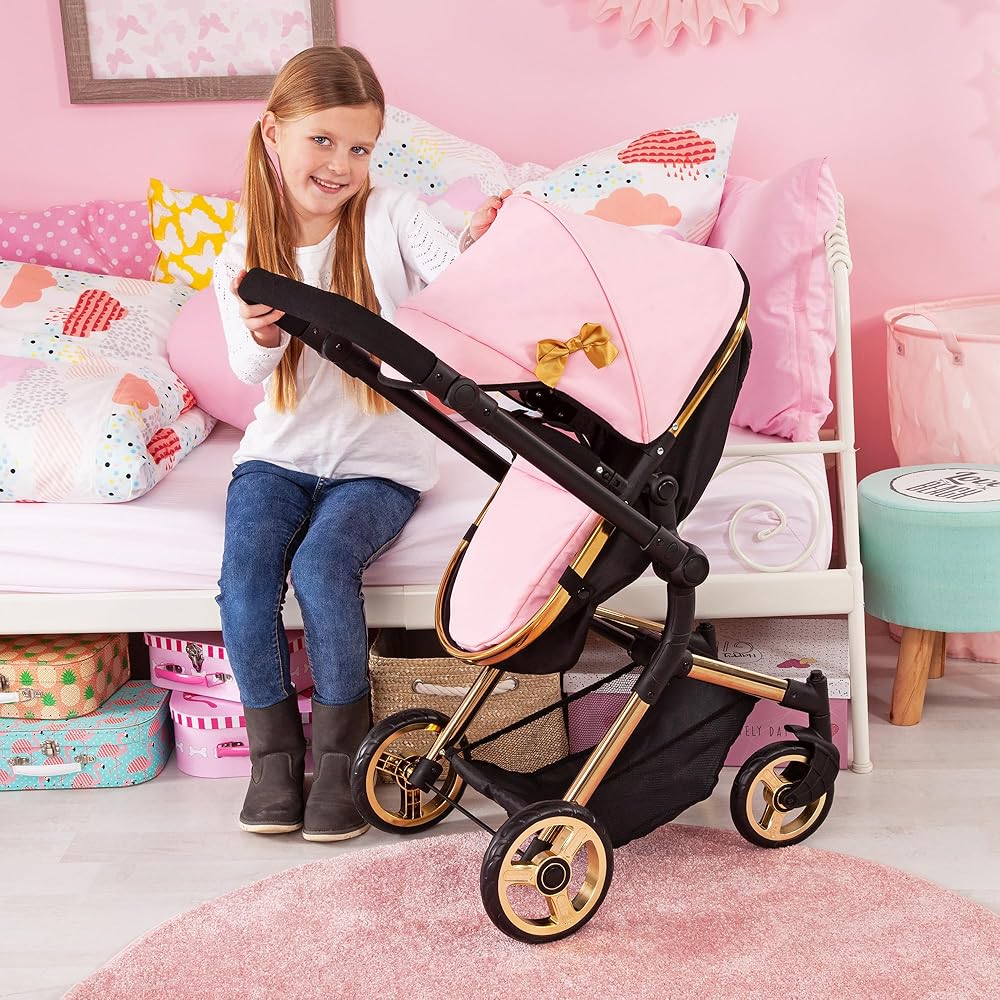 دمى باير ديزاين: عربة أطفال نيو فاريو - وردي، أسود، ذهبي - ملحق للدمى حتى 20 بوصة، حقيبة كتف، تتحول إلى عربة أطفال، لعبة أطفال، للأعمار من 3 سنوات فما فوق