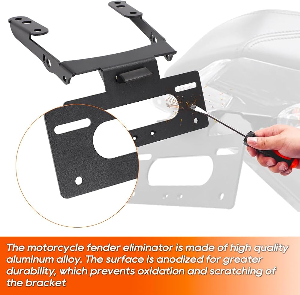 • [مادة عالية الجودة] حامل لوحة ترخيص الدراجة النارية مصنوع من سبائك الألومنيوم عالية الجودة، وهو أكثر ملاءمة لك لترتيب دراجتك النارية وتحسين مظهر دراجتك النارية.
