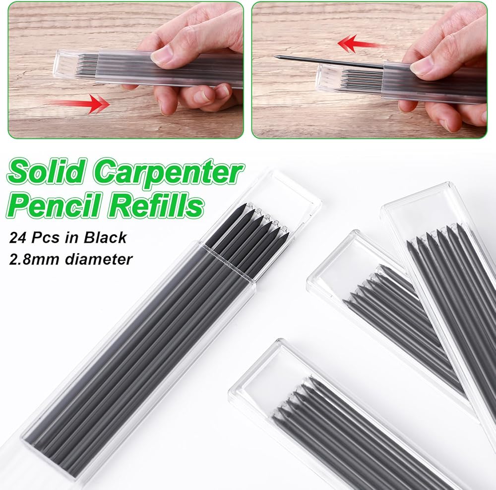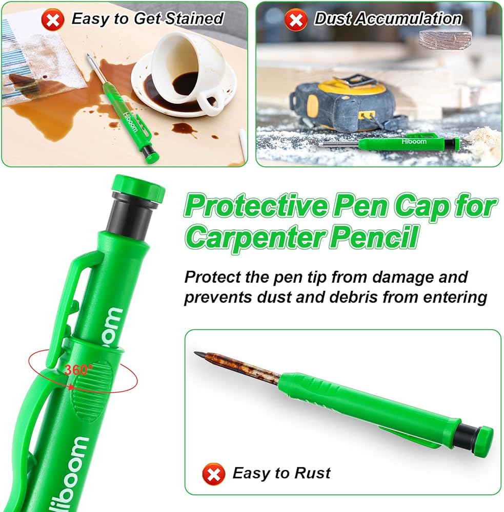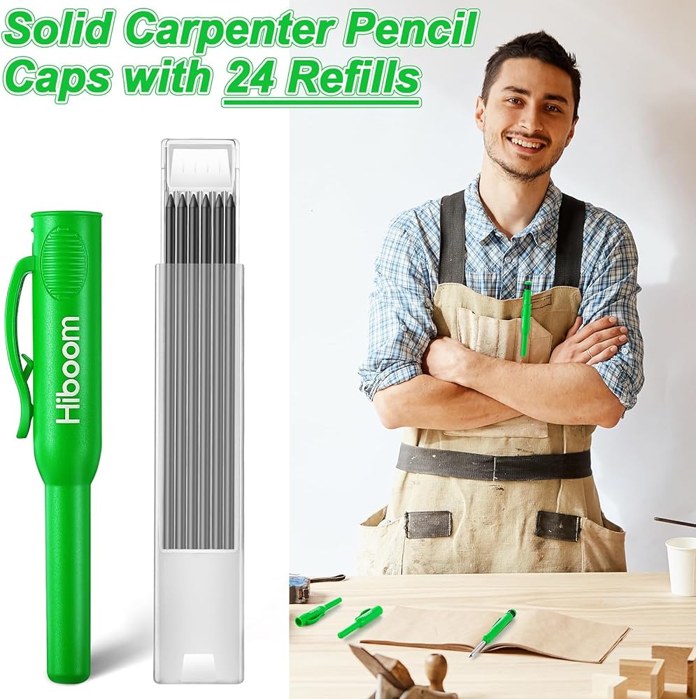 Enhance your carpentry tools with our 4 pcs carpenter pencil caps with 24 pencil refills, designed to be compatible with Hiboom Carpenter Pencils. Whether you're a professional carpenter, builder, or DIY enthusiast, these pencil caps and refills are crafted to meet your needs with durability, ease of use, and convenience.
