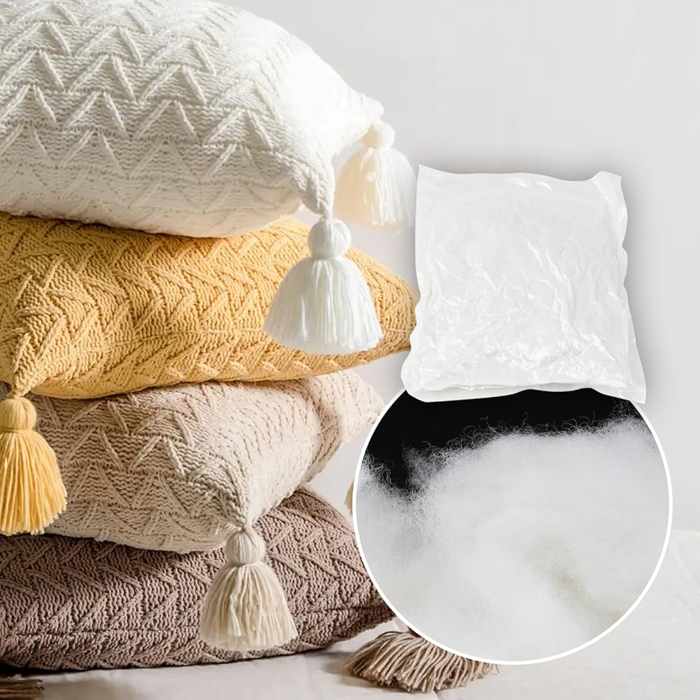 • تشمل العبوة: تحتوي العبوة على حقيبتين (200 جرام لكل عبوة) حشوة من ألياف البوليستر. (ملاحظة: العبوات مضغوطة بالشفط. عند فتح العبوة، يرجى الانتظار لمدة 24 ساعة أو نفخها يدويًا.)
