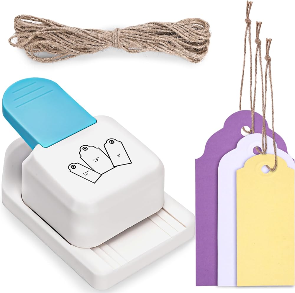محتوى العبوة - تحتوي العبوة على خرامة واحدة للحرف الورقية وحزمة من حبل الخيش البني لتعليق العلامات.