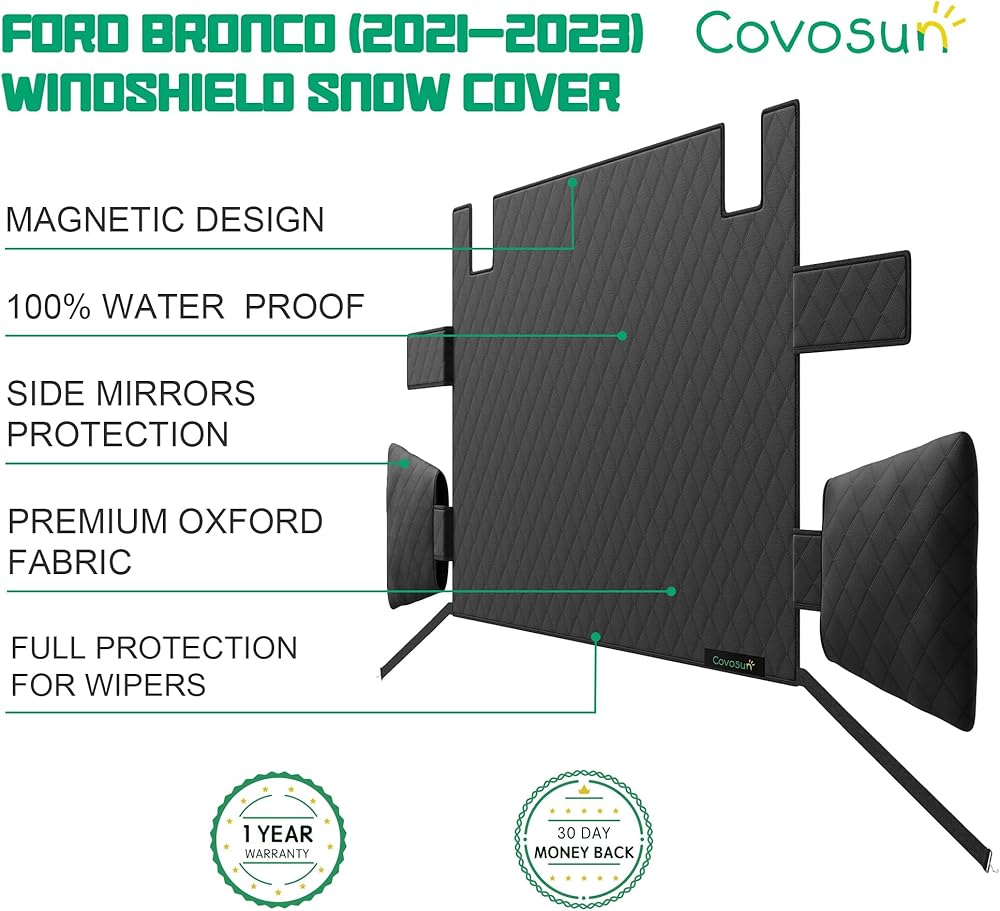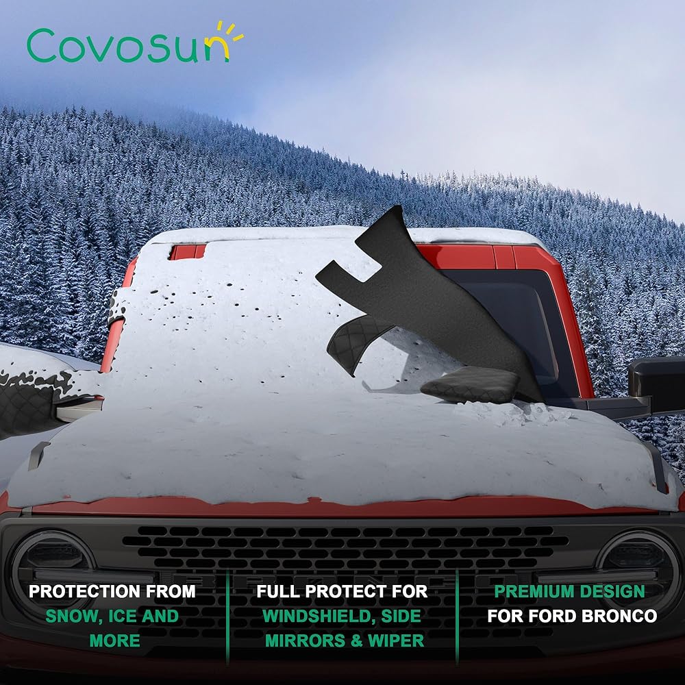 أفضل حماية كاملة: غطاء الثلج للزجاج الأمامي لسيارة Ford Bronco يحمي الزجاج الأمامي والمرايا الجانبية والمساحات ضد مجموعة متنوعة من العناصر. مع غطاء الزجاج الأمامي الخاص بنا، يمكنك حماية سيارة برونكو الخاصة بك من الثلج والجليد والمطر وأوراق الشجر والبرد وغيرها من الحطام وأنماط الطقس بسهولة.