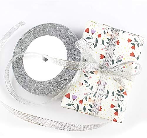 شريط فضي لامع من Tegg بطول 250 ياردة/ 6 لفات 1/4 بوصة من نسيج الأورجانزا الفضي المتلألئ، دانتيل مزدوج الجوانب لحفلات الزفاف وأعياد الميلاد، حزمة هدايا يدوية الصنع