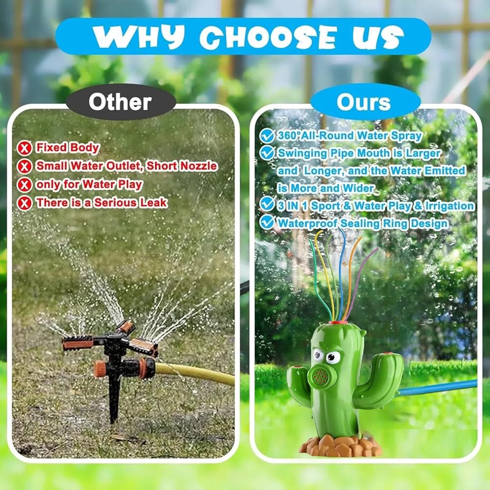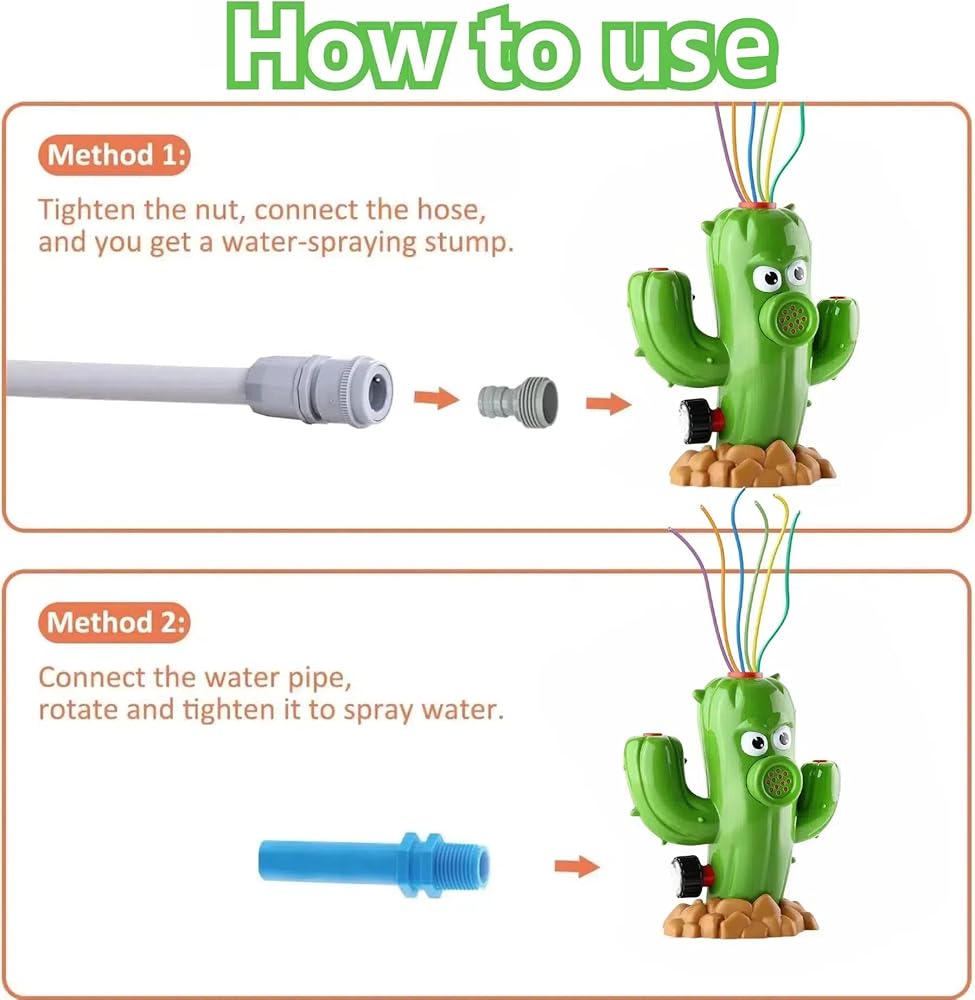 [سهلة التركيب والاستخدام] - هناك طريقتان لتوصيل لعبة رش الصبار هذه: واحدة هي توصيل الصمولة مباشرة بخرطوم الحديقة الملولب (قطر الصمولة الداخلي 0.59 بوصة/1.5 سم)؛ والآخر هو توصيل الموصل المتضمن بالصامولة، ثم توصيل الخرطوم غير الملولب (القطر الخارجي للموصل 1.06 بوصة/2.7 سم). كلما كان تدفق الماء أسرع، زاد ارتفاع البيسبول للرذاذ، وكان نطاق رذاذ الرش أوسع، والعكس صحيح.