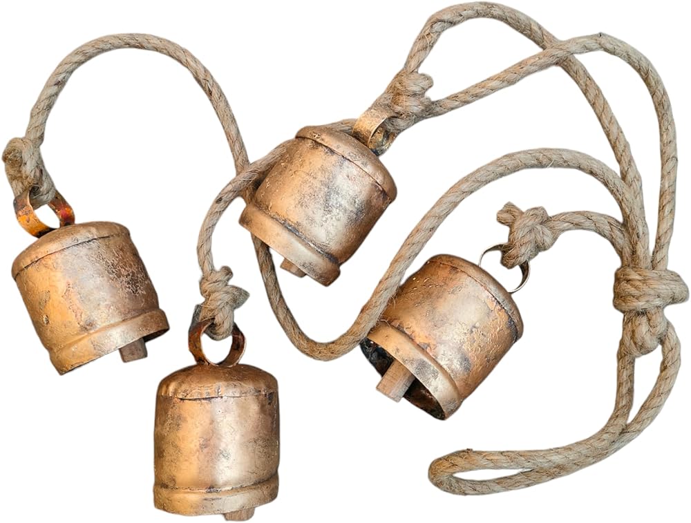 4 قطع أجراس عيد الميلاد المعدنية للديكور الريفي النحاسي الذهبي جرس كبير بقرة معلقة جرس ديكور للتعليق على الحائط