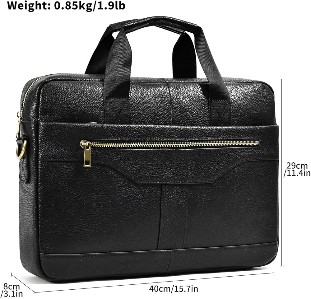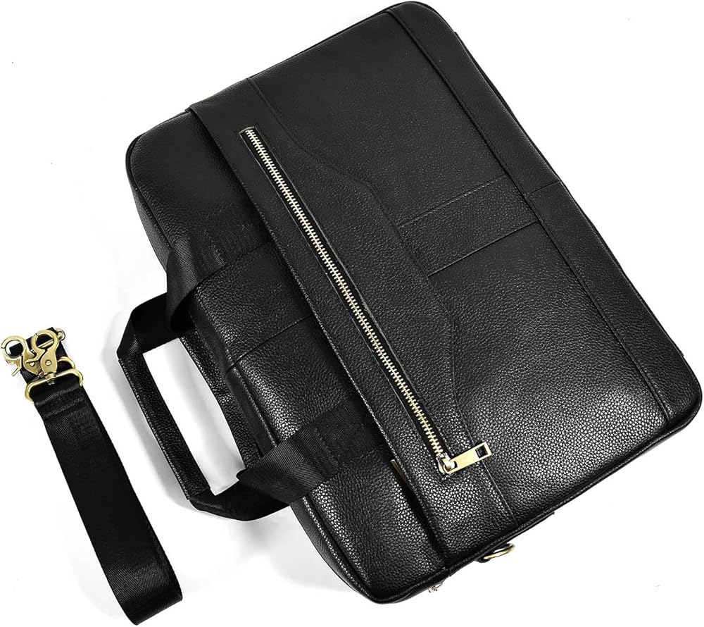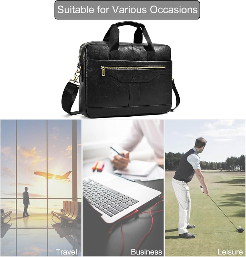 Equipped with a comfortable handle and adjustable shoulder strap for different carrying options. This leather briefcase is great to carry, cross-body, or over the shoulder. Wide uses:work, business trips, commuting, travel, school.