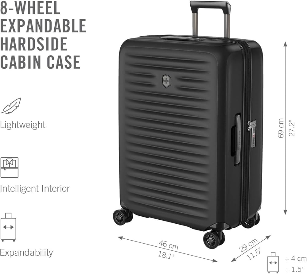 Travel flexibility has never looked so good or felt so effortless. Meet our Airox Advanced Medium Case, a piece of luggage so versatile, you'll wonder how you coped without it. Inside is a study in intelligent organization and meticulous Swiss engineering. An expansion system delivers up to 4 cm or 1.5” of extra packing volume. Outside, the aesthetic is sleek, low-key elegance. Built lightweight, it's a dream to maneuver.