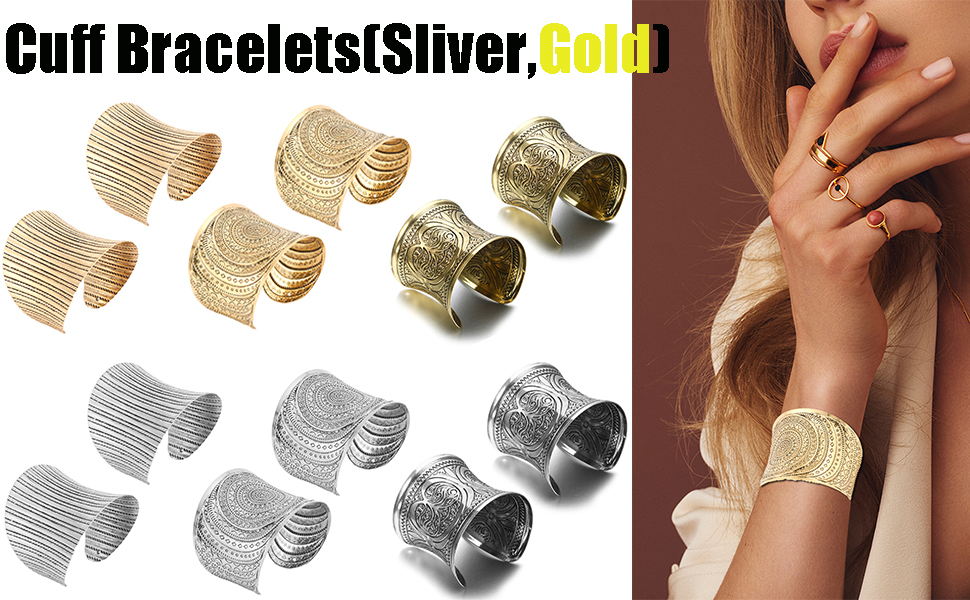 سوار مفتوح: طول سوار الكفة الذهبي/الفضي: 3.82 بوصة، العرض: 2.79 بوصة. يتميز السوار بتصميم فريد من نوعه، وهو سهل الارتداء والخلع. مقاسات قابلة للتعديل تناسب معصمك، ومناسبة لمعظم الأشخاص، ويمكنك تعديل المقاس قليلاً وفقًا لحالتك الخاصة.