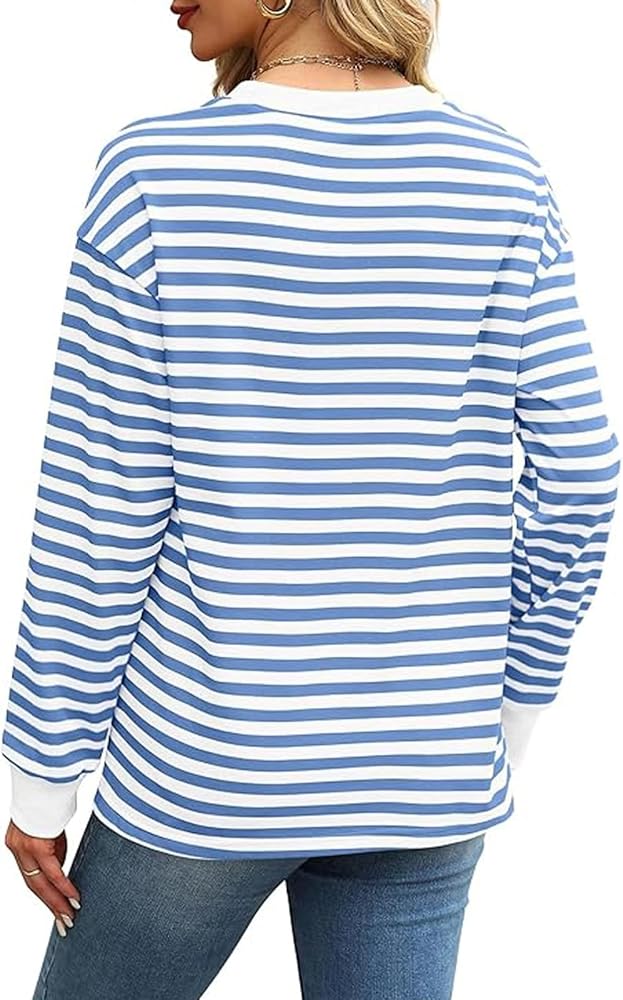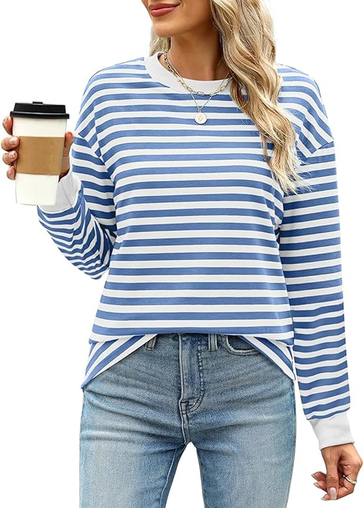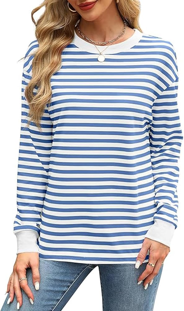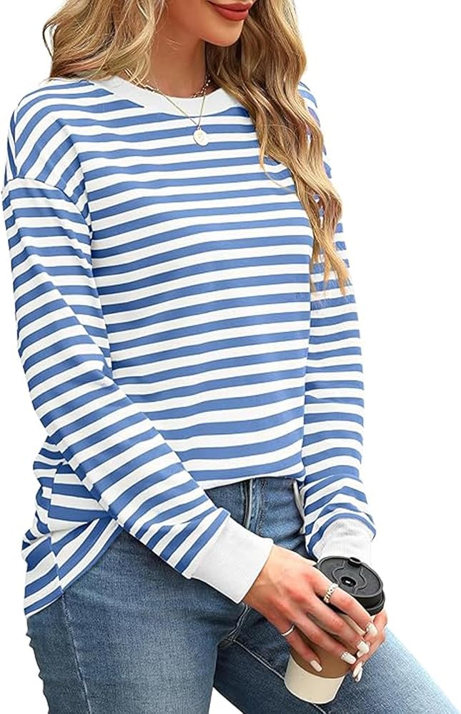 المزايا: 95% بوليستر، 5% سباندكس، ناعم ومريح ومسامي. تونيك للسيدات مخطط، قمصان علوية للسيدات، تي شيرتات نسائية، قمصان بأكمام طويلة وأكتاف منسدلة، رقبة وأساور أكمام مضلعة مع رقعة ملونة