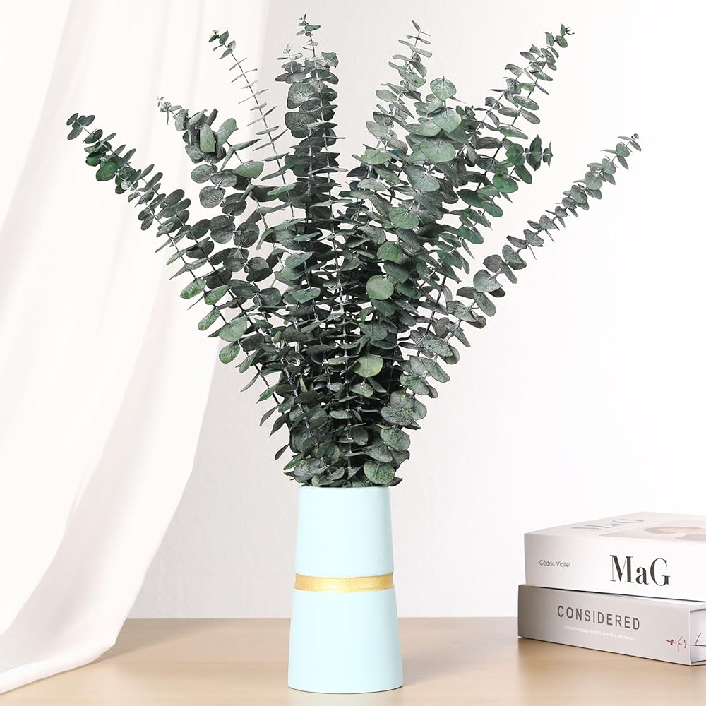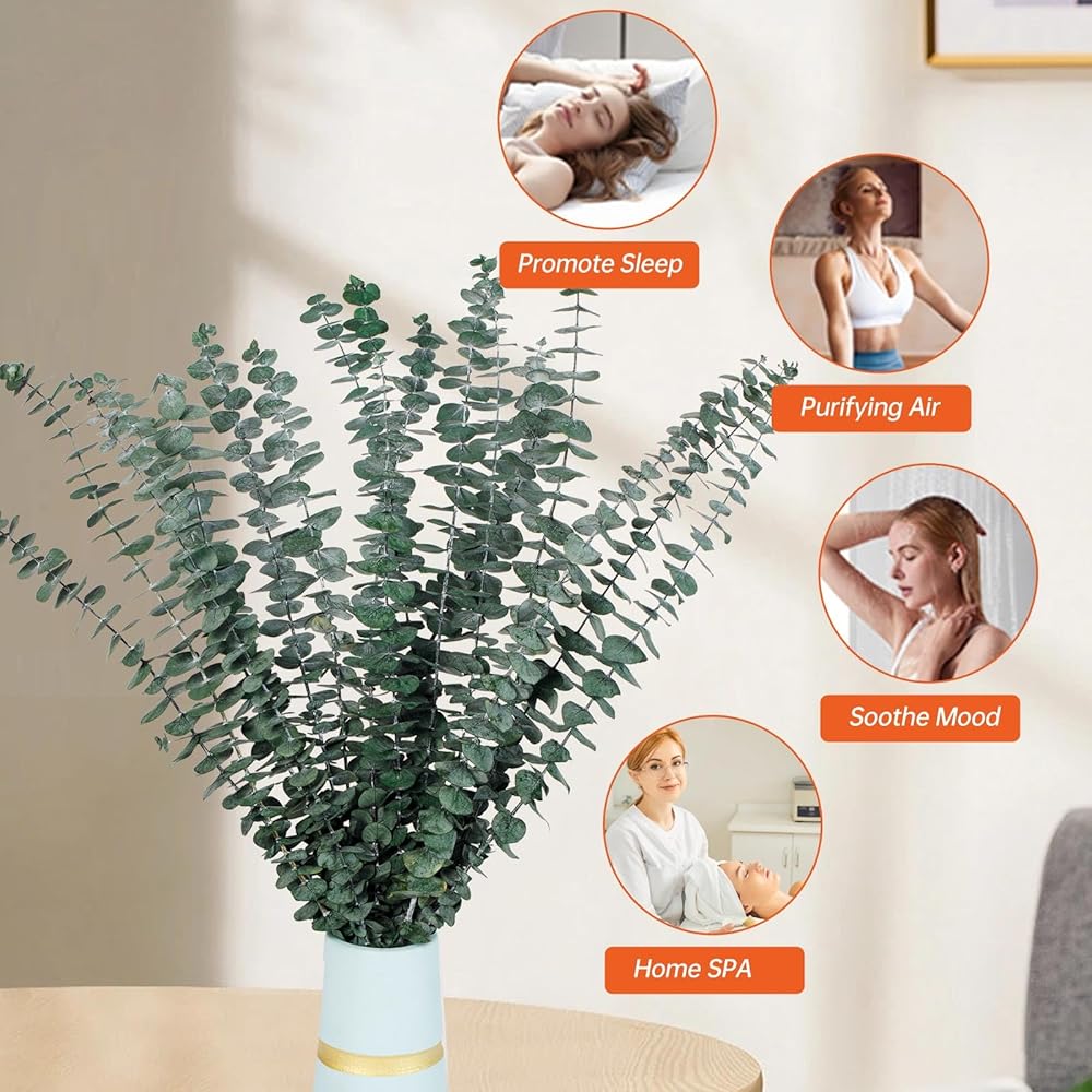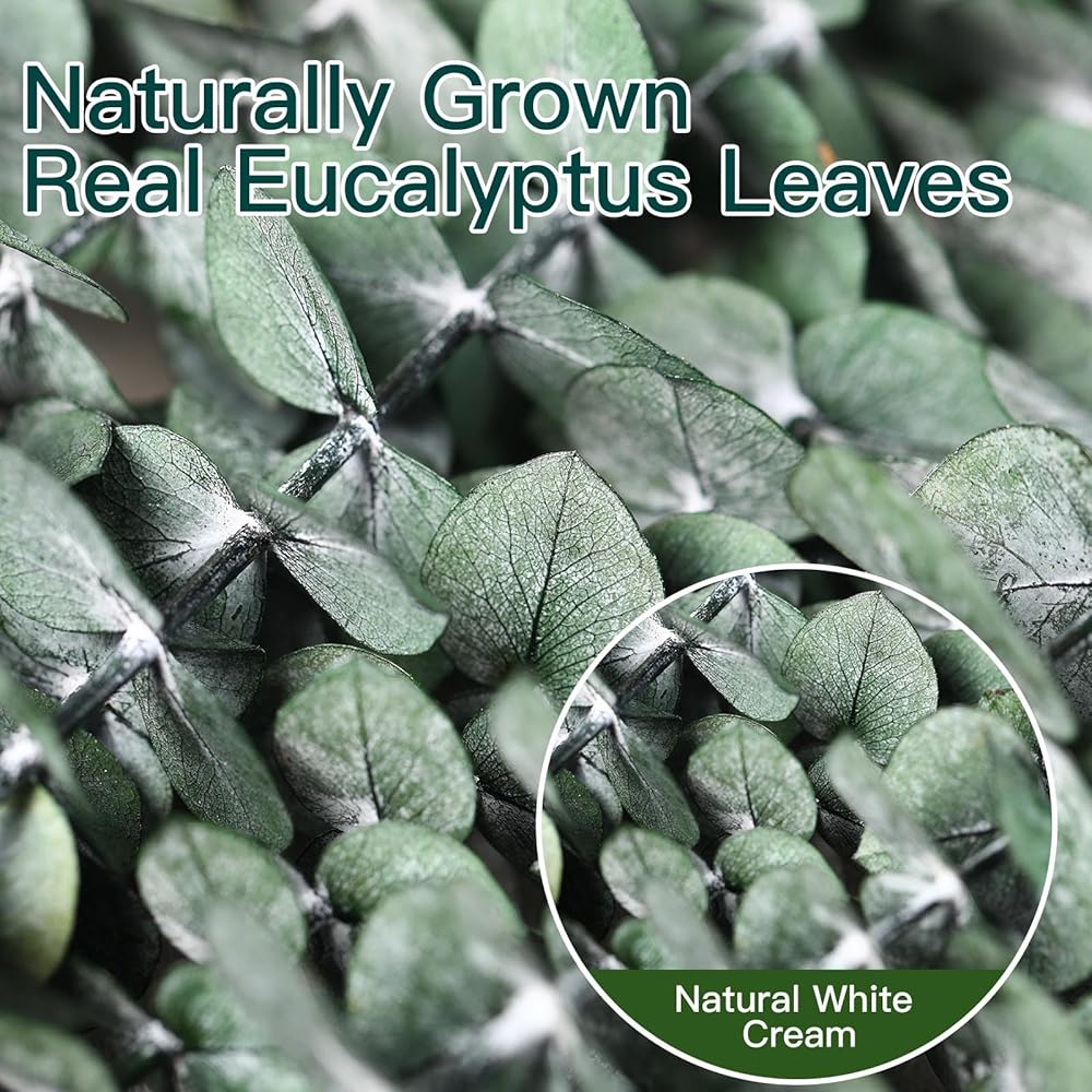 ديكور نبات الأوكالبتوس: يتم استخدام الأوكالبتوس المجفف مع سيقان النباتات لترتيب الأزهار. كديكور لمكان باقة زفاف بوهو، والحفلات، والتعليق على الحائط، وغرفة النوم، والإكليل، والحمام، والحديقة، وأعياد الميلاد DIY وإكليل الأوكالبتوس. مناسبة للديكور الداخلي والخارجي، مما يخلق بيئة منزلية دافئة وحديثة ومريحة