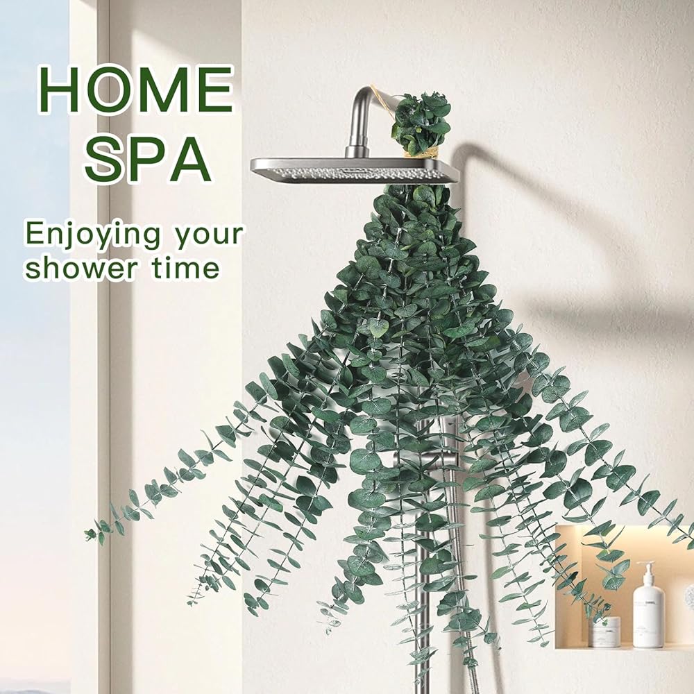 10 قطع من سيقان الأوكالبتوس المجففة للاستحمام، 45.7 سم طبيعية حقيقية من أوراق الأوكالبتوس الخضراء الحية وأغصان نبات الدش المعلق لديكور المنزل والمنتجعات الصحية وديكور طاولة الحمام