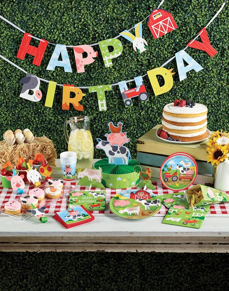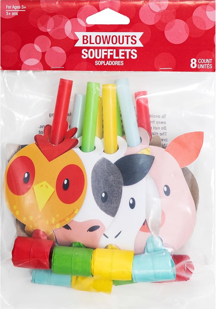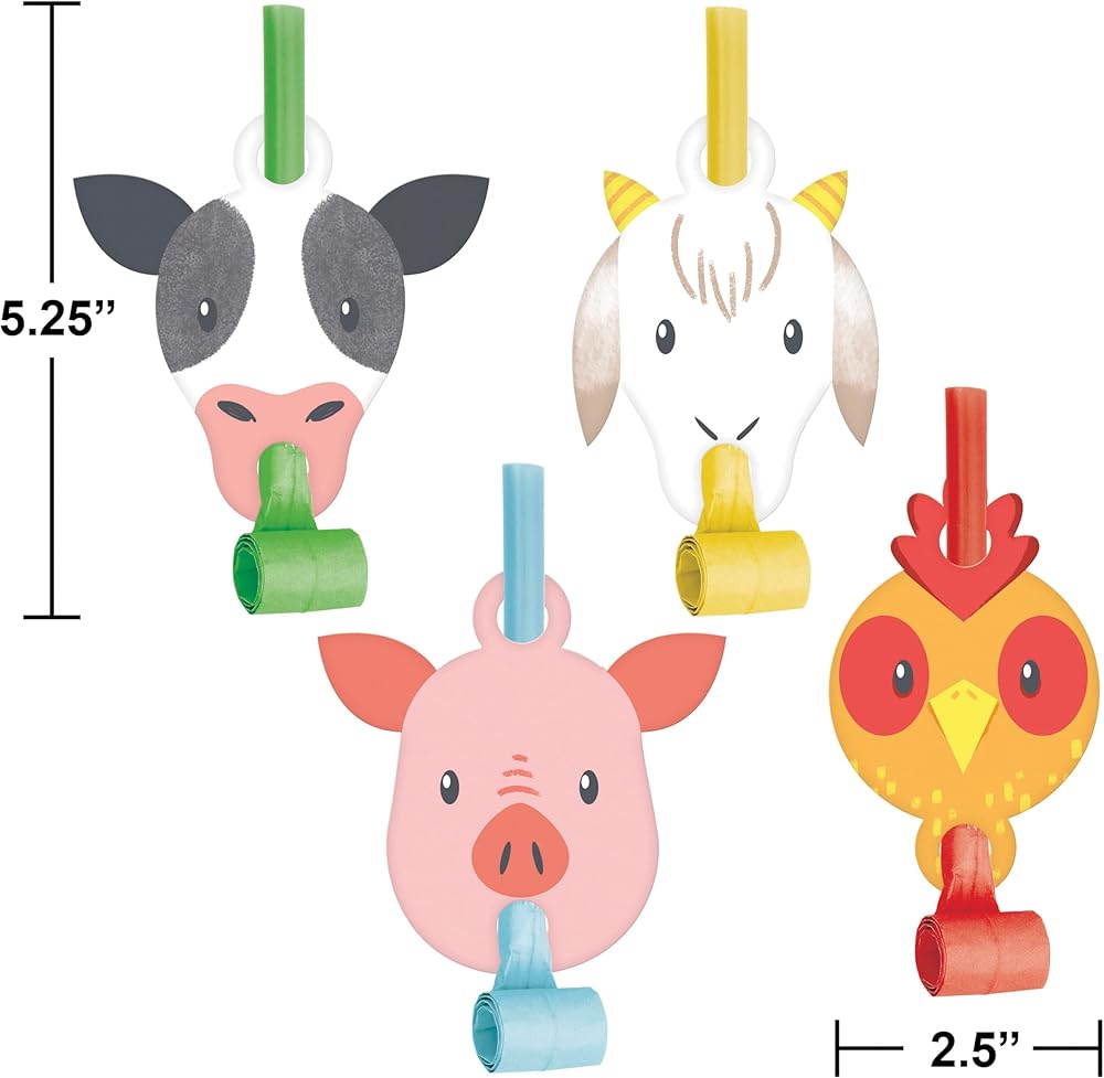 Make some noise at your birthday party with help from our Farm Animals Party Blowers. These party blowers are sold eight per package, and they measure 5.25" x 2.55". Each package of party blowers includes cow blowers, goat blowers, pig blowers, and chicken blowers. Perfect for creating picture-perfect moments at your celebration, grab these blowers, and complete your party with our coordinating Farm Animals party supplies.