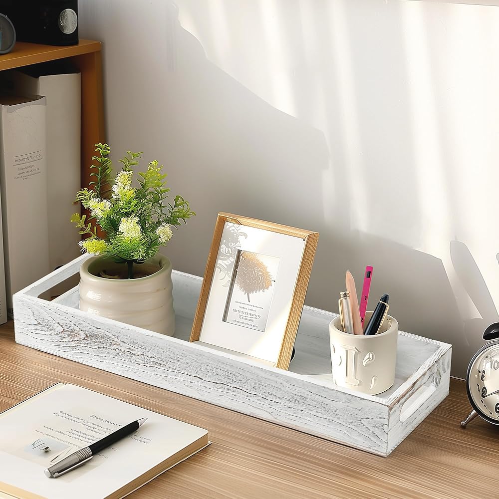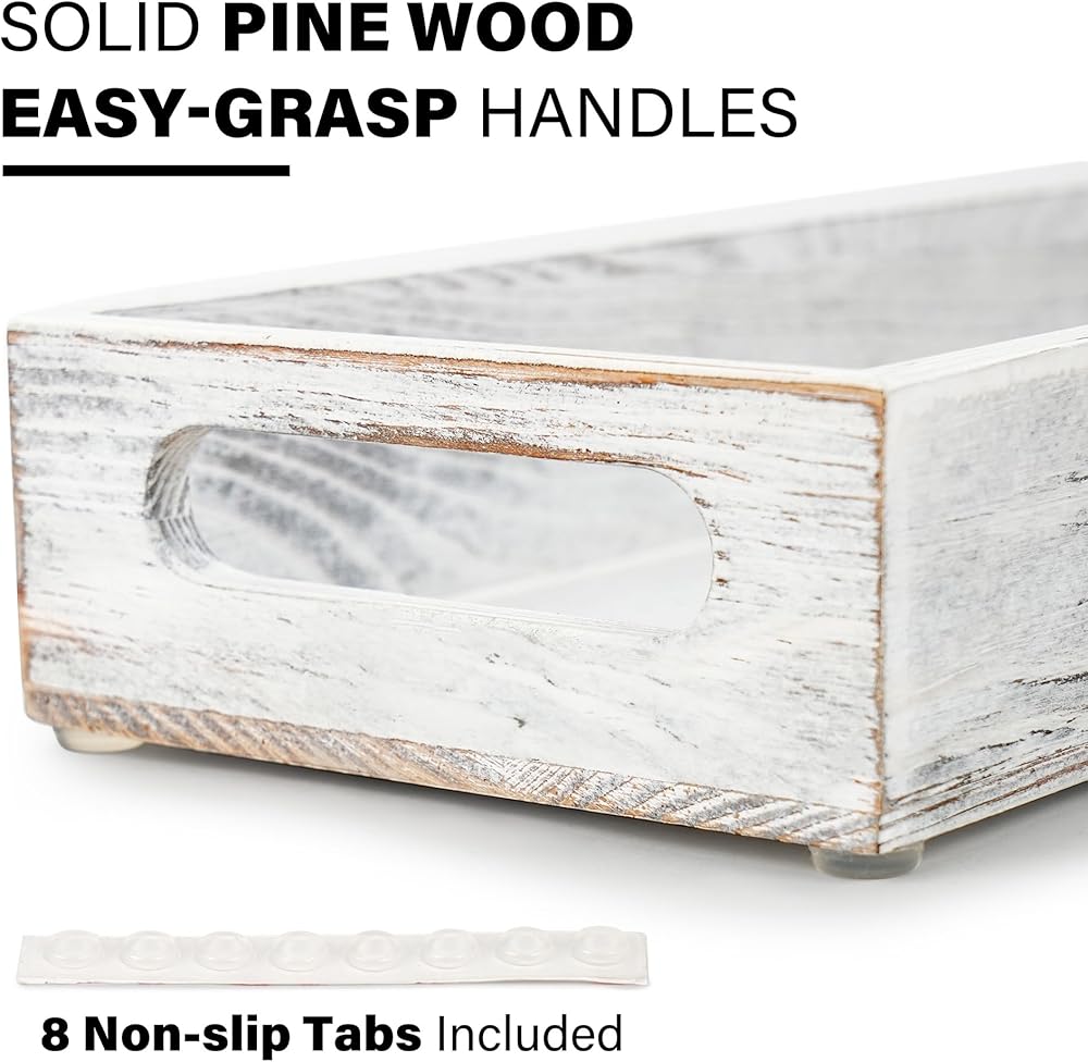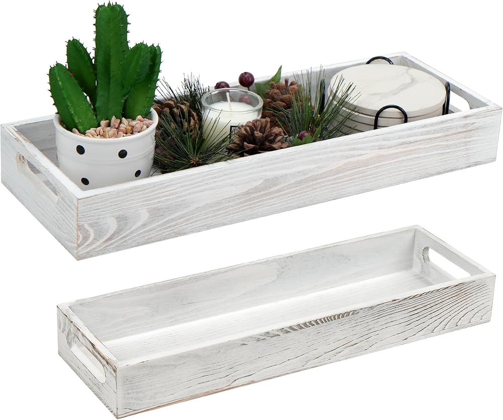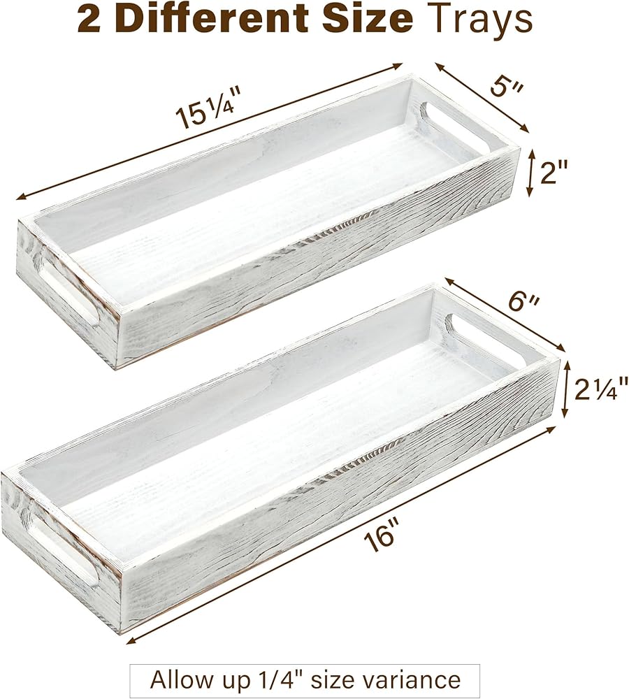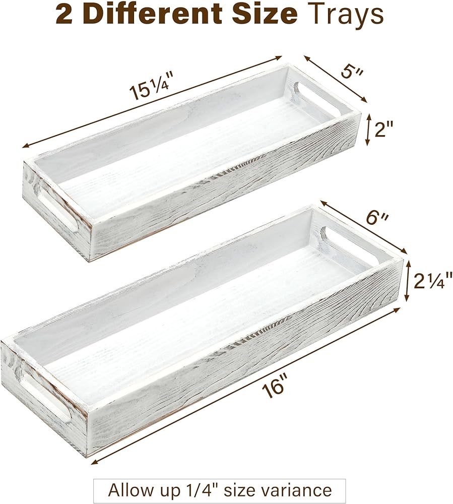 ديكور القطعة المركزية: ستضيف الصينية الخشبية المطلية باللون الأبيض لمسة ريفية لطيفة إلى أي مساحة؛ رائعة للاستخدام كقطعة مركزية مزخرفة مع الشموع والزهور والنباتات وغيرها من الديكورات المنزلية على طاولة الطعام أو طاولة القهوة أو جزيرة المطبخ أو طاولة الزينة أو المسند أو سطح الطاولة.