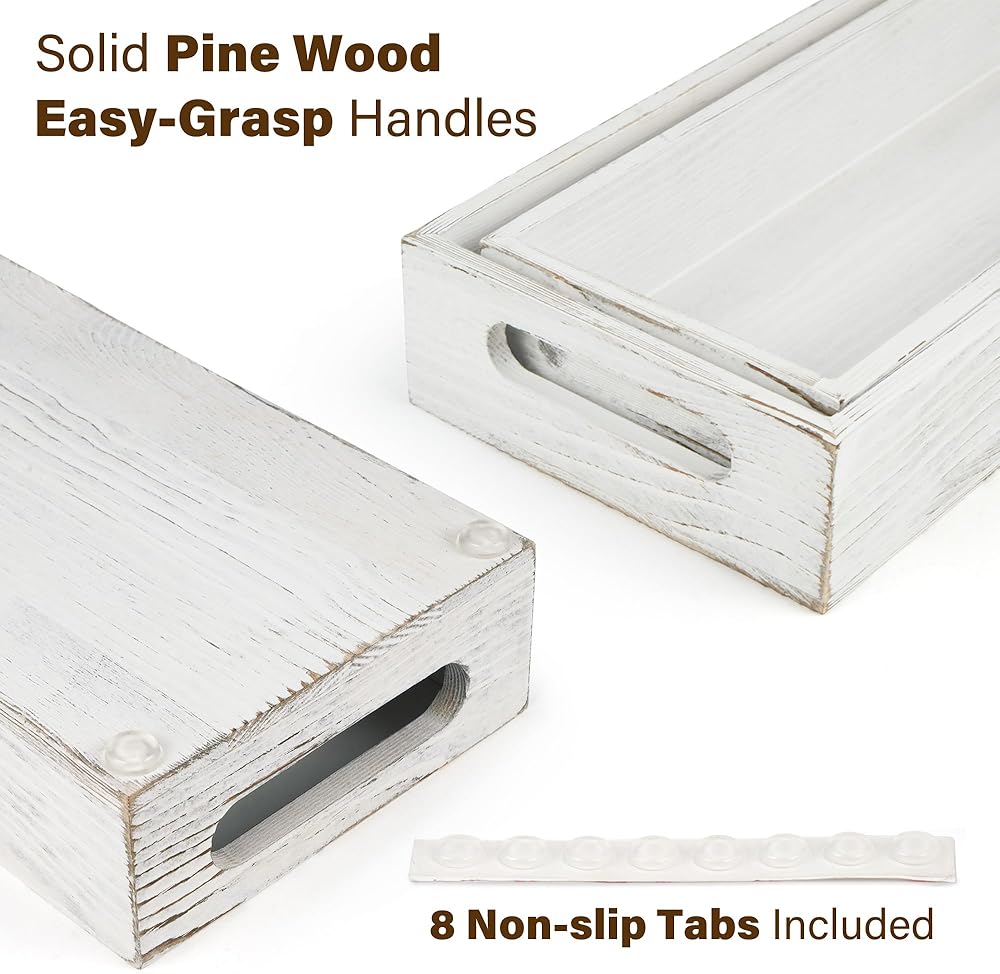 متينة وسهلة الحمل: الصينية المستطيلة الخاصة بنا مصنوعة من خشب الصنوبر الصلب، ومقبضين مقصوصين لسهولة الحمل؛ متينة بما يكفي لتقديم المشروبات والزجاجات والوجبات الخفيفة