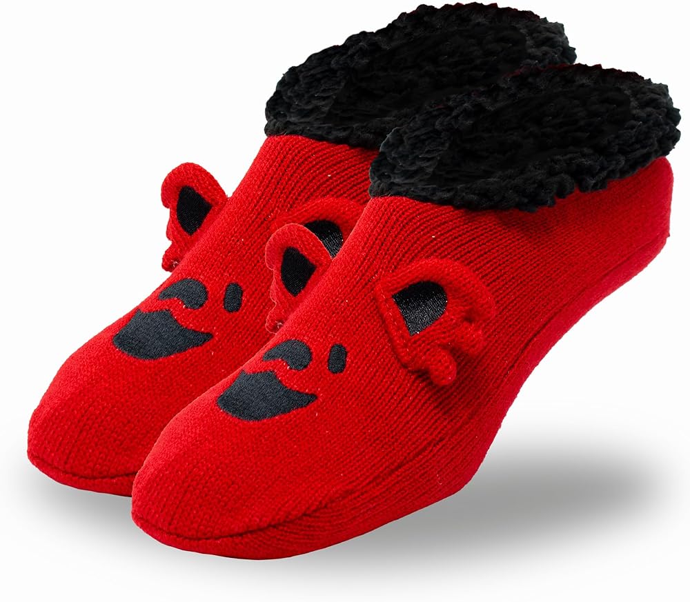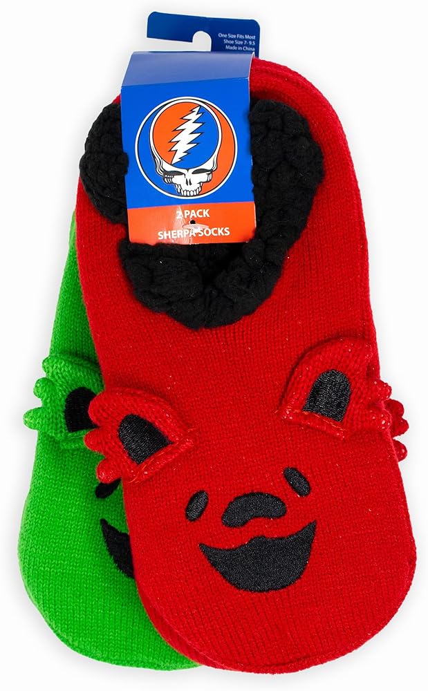 أخبرني المزيد: هذه الجوارب الناعمة والمريحة للبالغين من الجنسين مصنوعة من مواد عالية الجودة - 98% بوليستر / 2% ألياف لدنة. يتميز هذا الزوج من الجوارب ذات النعال باللونين الأحمر والأخضر بزوج واحد من الدببة الراقصة باللون الأحمر وزوج واحد من الدببة الراقصة باللون الأخضر مع جزء علوي ناعم من الشيربا.