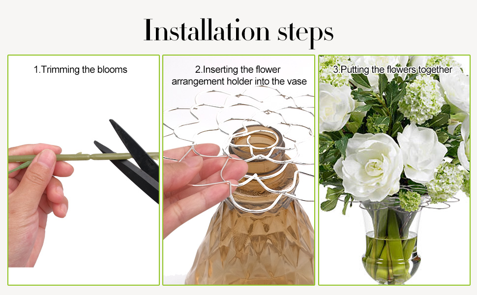 سهل الاستخدام: قم بتبسيط ترتيبات الزهور الخاصة بك من خلال حاملات تنسيق الزهور سهلة الاستخدام. ضع الحامل على المزهرية، وأدخل الزهور من خلال الشبكة، واصنع باقات مذهلة دون عناء للحصول على تأثير زخرفي مبهج.