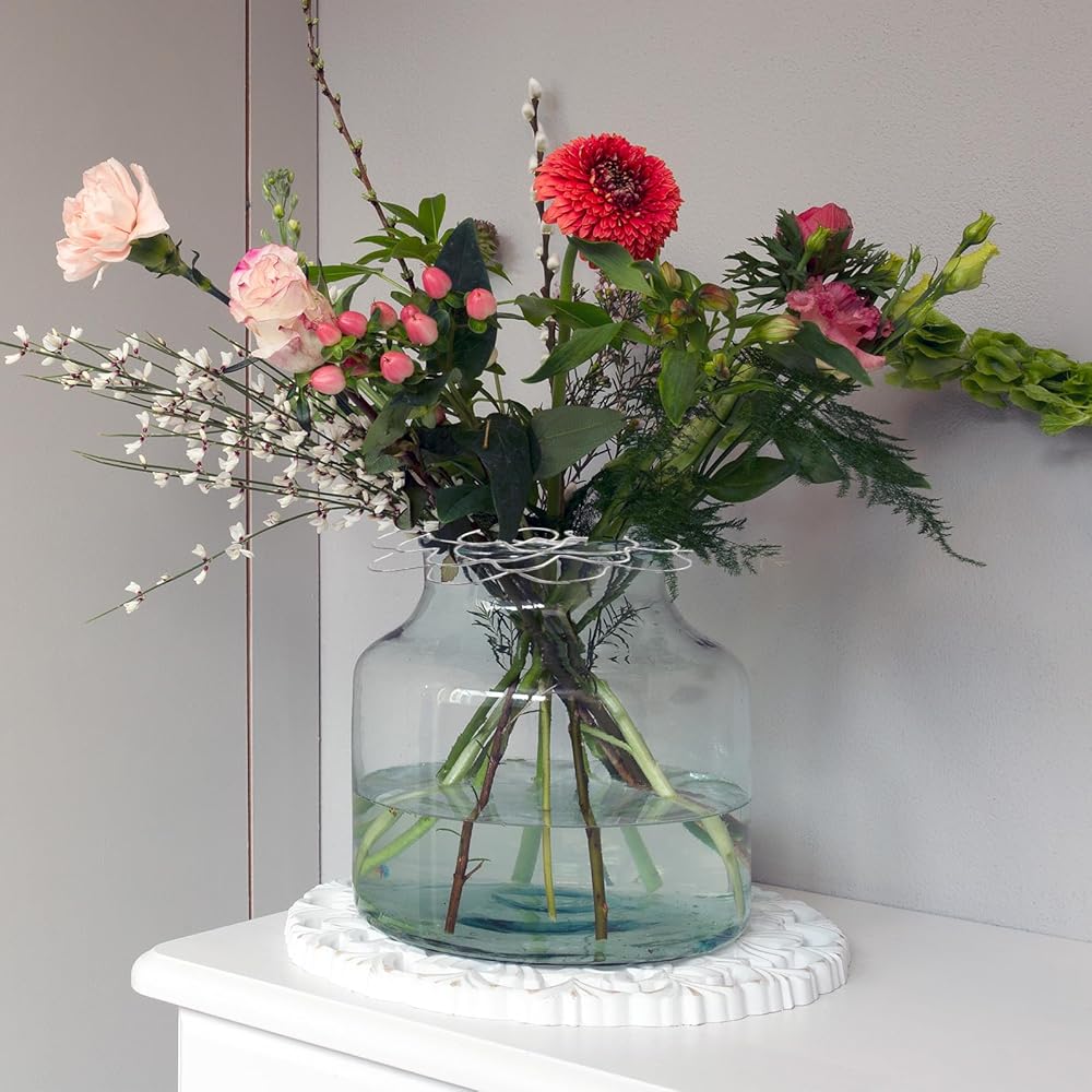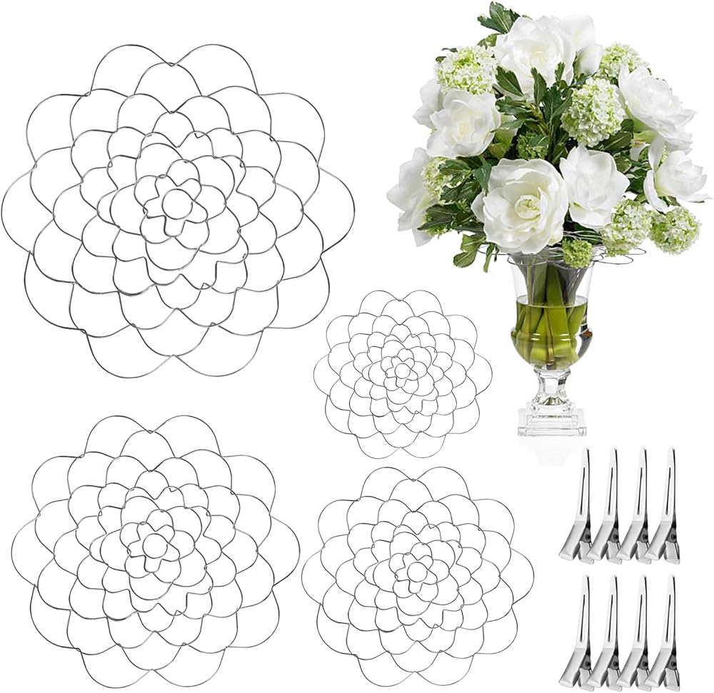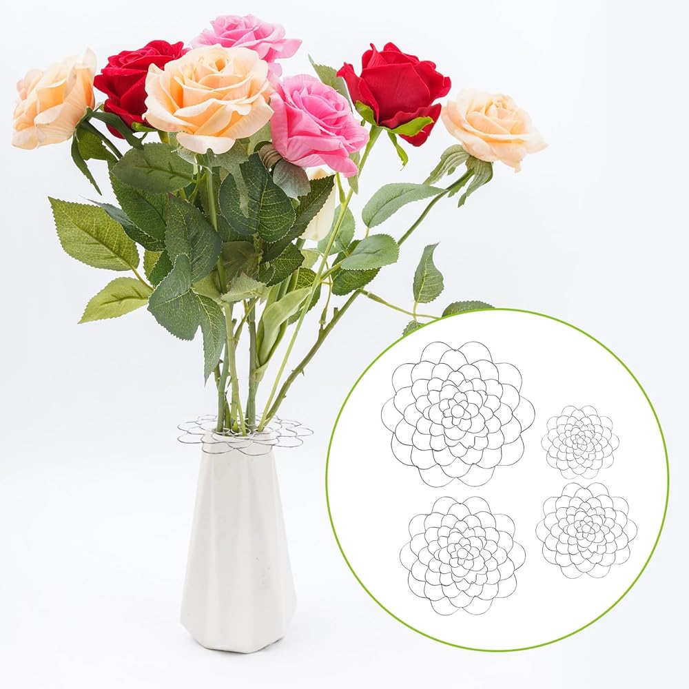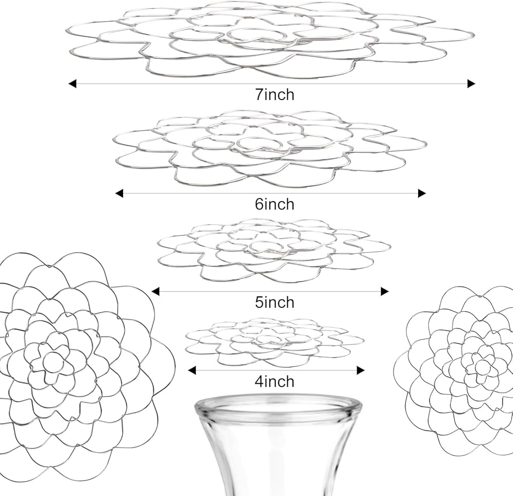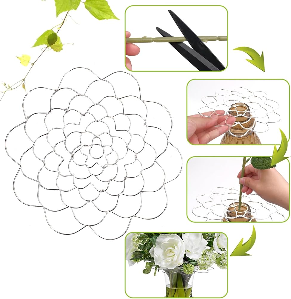 تصميم أنيق: تتميز بشكل زهرة رائع، توفر حوامل ترتيب الزهور لدينا جمالية متناسقة تناسب تمامًا فتحات المزهرية. يضيف تصميم الشبكة الفضية لمسة ساحرة، مما يجعلها إضافة راقية لأي ديكور منزلي.