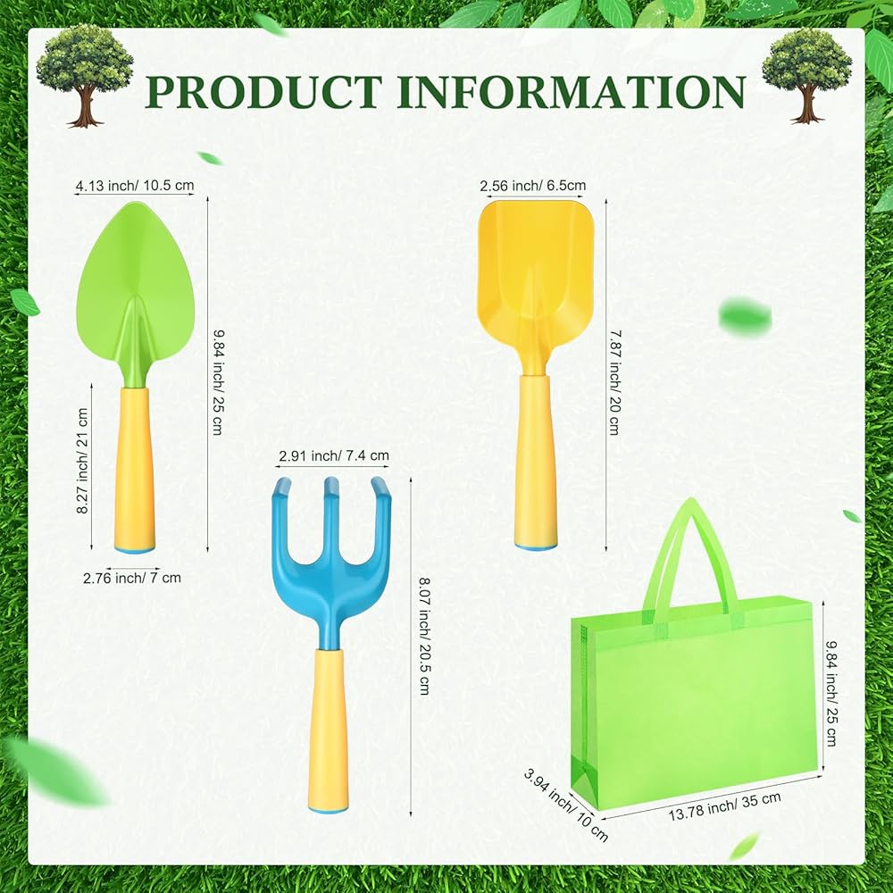 • Suitable Size for Convenience: our gardening tools for kids are about 7.87-8.27 inches/ 20-21 cm long, ideal for easy handling during your gardening tasks; The nonwoven bag is about 13.78 x 9.84 x 3.94 inches/ 35 x 25 x 10 cm, providing ample space for your tools and other tools