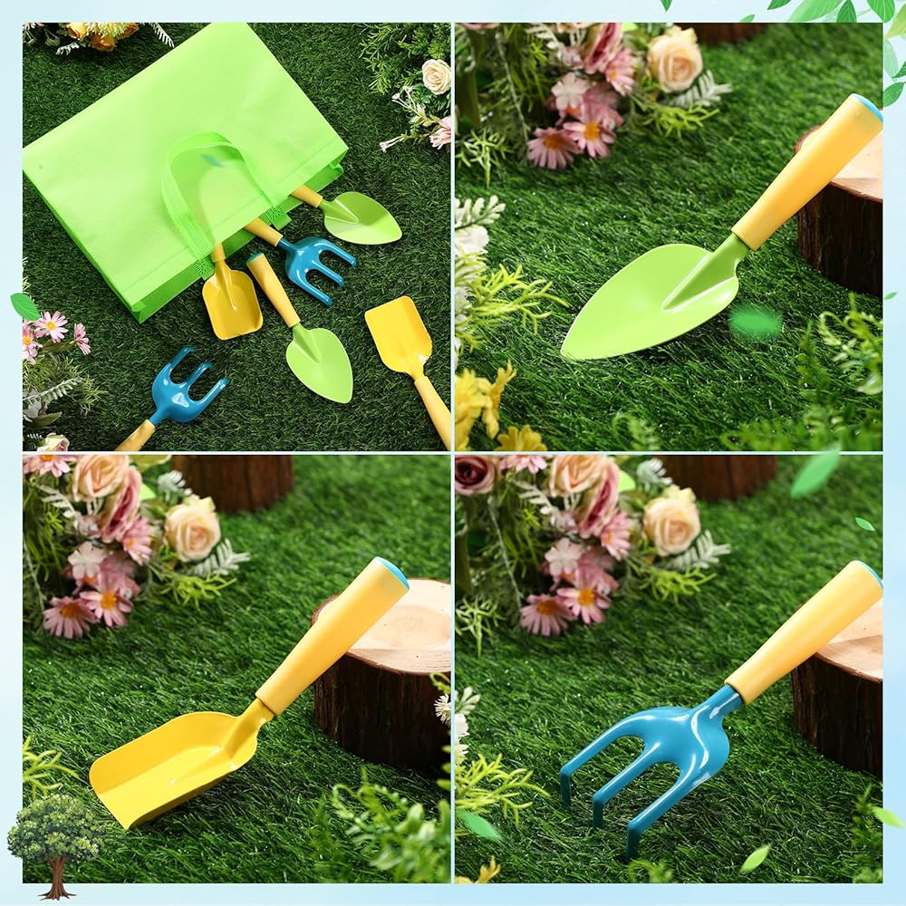 • Vibrant Colors for Joyful Gardening Experience: the kids yard tools come in pleasant colors of yellow, blue, and green, adding a cheerful atmosphere to your gardening routine; Meanwhile, the nonwoven bags are a refreshing fruit green color, making for a colorful and fun gardening experience