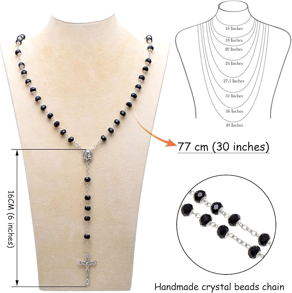 • This is handmade rosary necklace, made with crystal beads and crucifix cross pendant, the necklace is total 30 inches long
