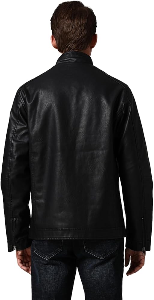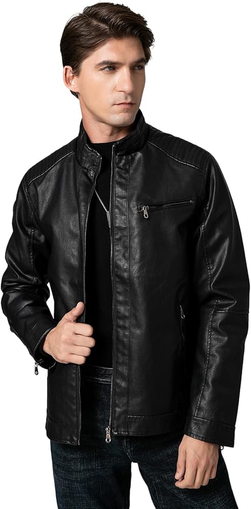 كم طويل، سترات بومبر مضادة للرياح بنمط موتو مع تصميم ياقة واقفة، سحاب إغلاق، جيبان مائلان، وجيبان على الصدر، مقاس نحيف، جميع التصميمات تجعل هذه السترة الجلدية أنيقة وسهلة، وتظهر سحر الرجل الأنيق