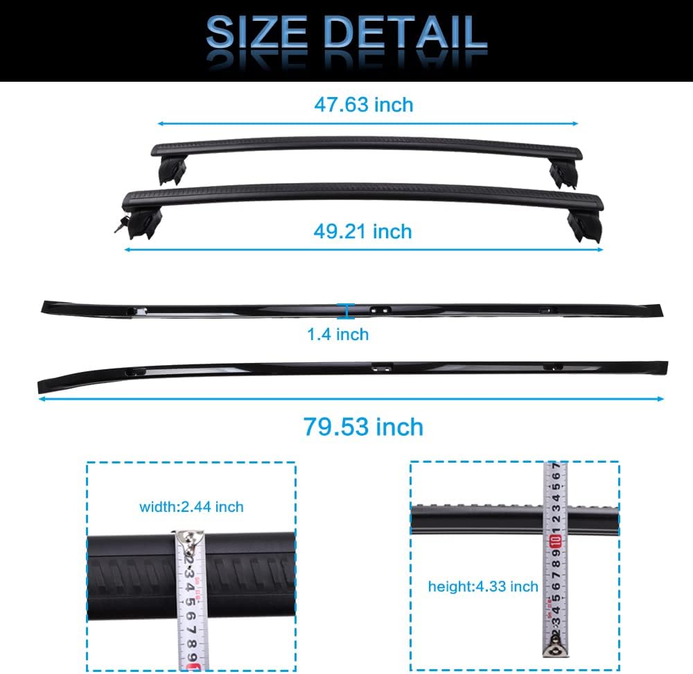 سعة تحمل عالية: يمكن لقضيب الشحن أن يتحمل أمتعة بوزن 165 رطل/75 كجم لتلبية احتياجاتك اليومية في السفر والسفر. يمكن للقضيب المتقاطع حمل الأمتعة والسلالم وألواح ركوب الأمواج والزوارق ونفايات الحديقة وغير ذلك الكثير
