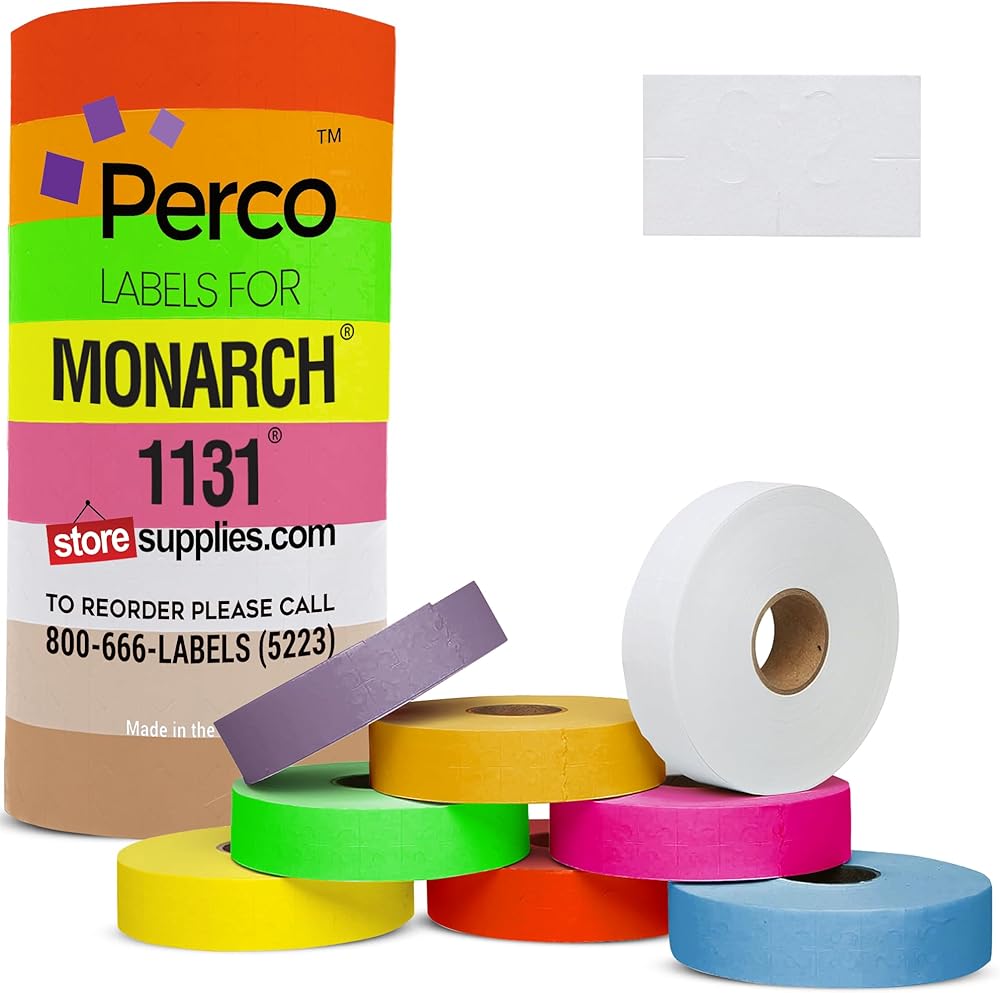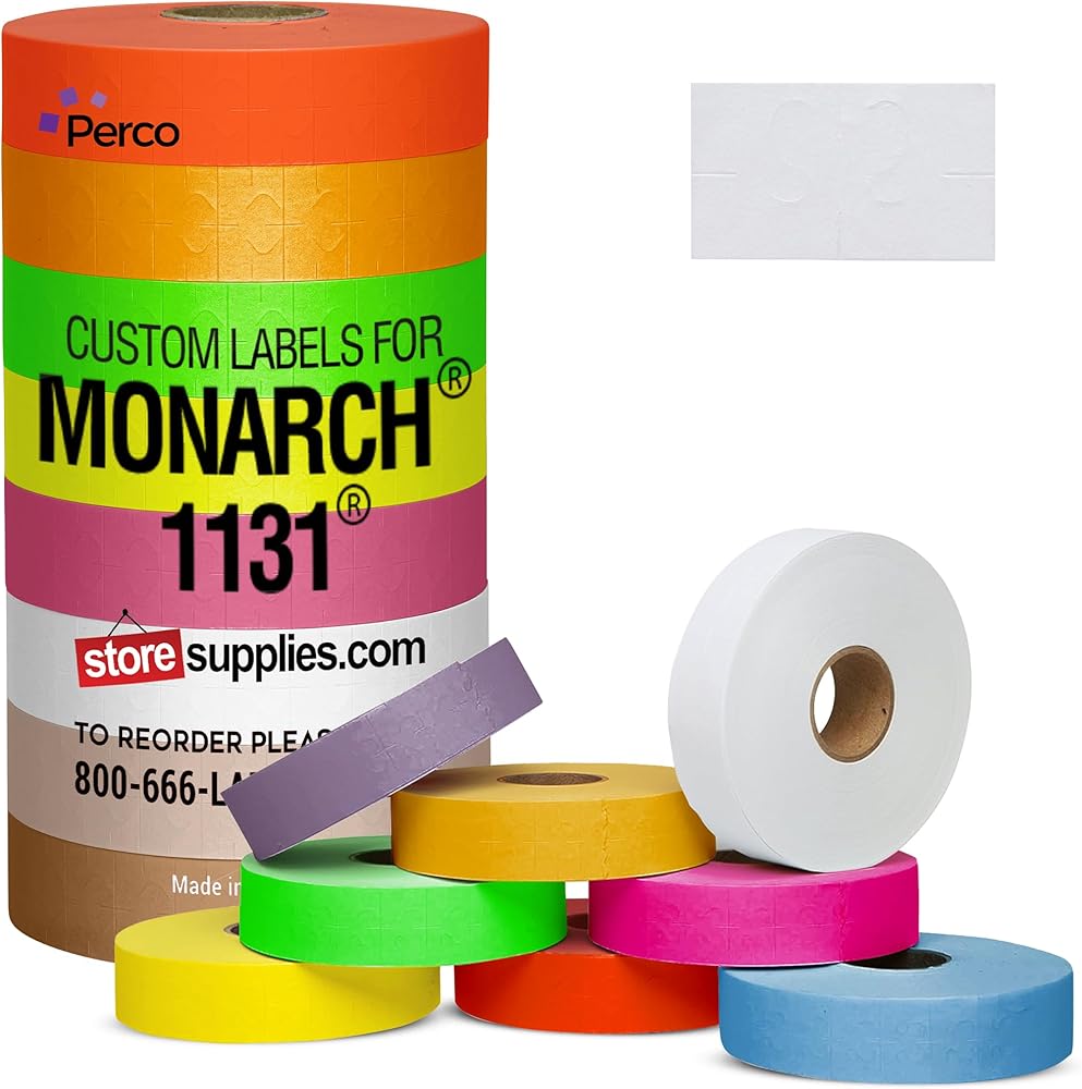 The Best Price marking Labels Compatible with Monarch 1131 For The Best Price There's nothing more annoying and time consuming than pricemarking labels that don't fit your pricing gun perfectly. These labels have been precision cut to 0.75” x 0.4375”. They perfectly fit all Monarch 1131 models, so that you can save time while loading. You'll experience quick loading and a smooth operation that makes pricing up your inventory much faster and easier. You'll also save time by loading less often, as each roll contains 2500 labels. These labels come in a fluorescent orange color, which makes it easy for both customers and staff to quickly see the price label. They are backed with a strong, secure adhesive that sticks easily. There's also a security slit in each label to prevent tampering. With Bonus Ink Rolls With each sleeve you'll receive a bonus blue/black ink roll, which also fit perfectly into your Monarch 1131 price gun. These inkers create a bold, easy-to-see print. We want you to try these labels for yourself, absolutely risk free. If you aren't completely satisfied, for any reason at all, then we'll be more than happy to send you a replacement or give you a full refund. We're proud to offer unbeatable support to all of our customers, so just let us know if there's a problem and we'll immediately put it right – guaranteed. Start Pricing Up Your Inventory Faster, Easier and Cheaper – Pick Up These Price Marking Labels Today *These labels are made by Perco Label for use with Monarch labelers. They are not made or sponsored by Monarch Marking Systems, Inc.