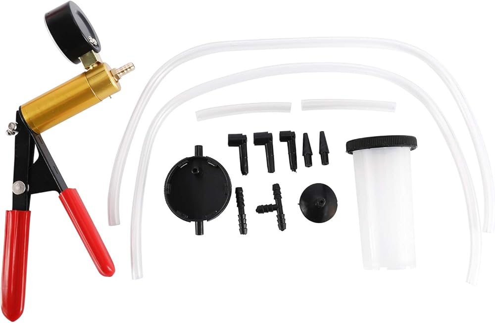- تشتمل على مضخة مع مقياس تفريغ، وأنبوبين بطول 2 قدم، ومحولات تفريغ وتفريغ الفرامل، وخزان سائل الفرامل.