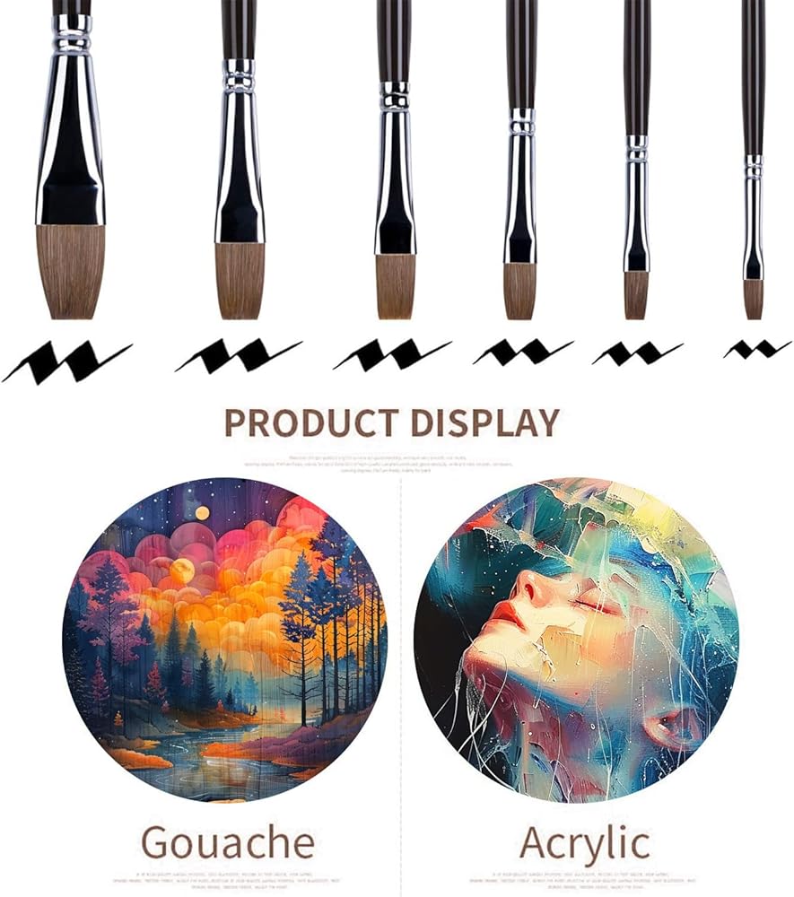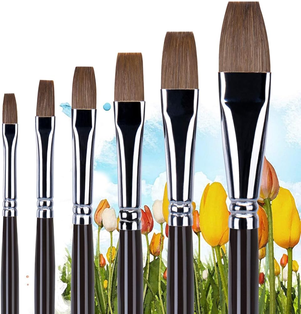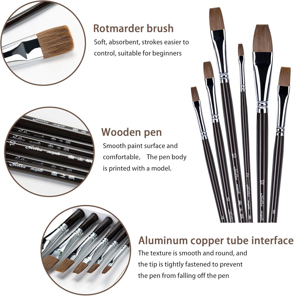 Golden Maple Professional Quality Set of 6 Flat Artist Paint Brushes will give you years of Creative Joy! Paint brushes are the most important tool for painters. These Flat Artist Paint Brushes offer the best liquid holding capacity and spring back. The smooth birch handles provide a luxurious look and feel.