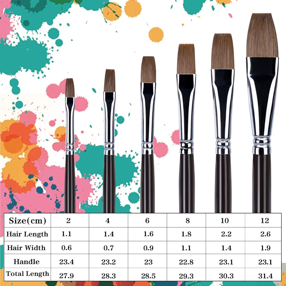FLAT SHAPE BRISTLES - Paintbrush Set of 6 in Sizes: 2-4-6-8-10-12. The Most Common Range.