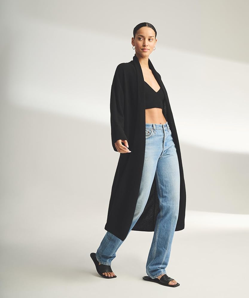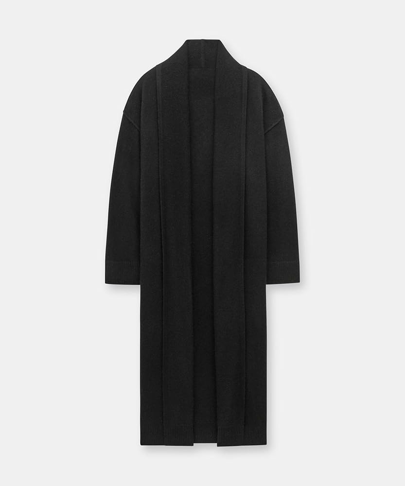 The Reversible Cashmere Shawl Duster is a two-in-one knit with a relaxed classic fit. It features a shawl neckline, open front, ribbed details, and a fully reversible construction — so you can wear it with the seams inside or out. Crafted from 100% airy, lightweight cashmere.