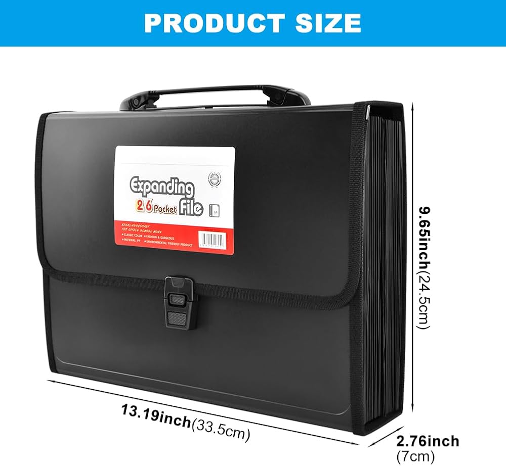 • Ample Storage: This expandable file folder features 26 durable plastic pockets to neatly organize documents, receipts, invoices, and more. Accordion-Style Expanding Design, Allowing You To Classify And Organize Documents, With Index Labels, So That You Can Find Documents When You Need.