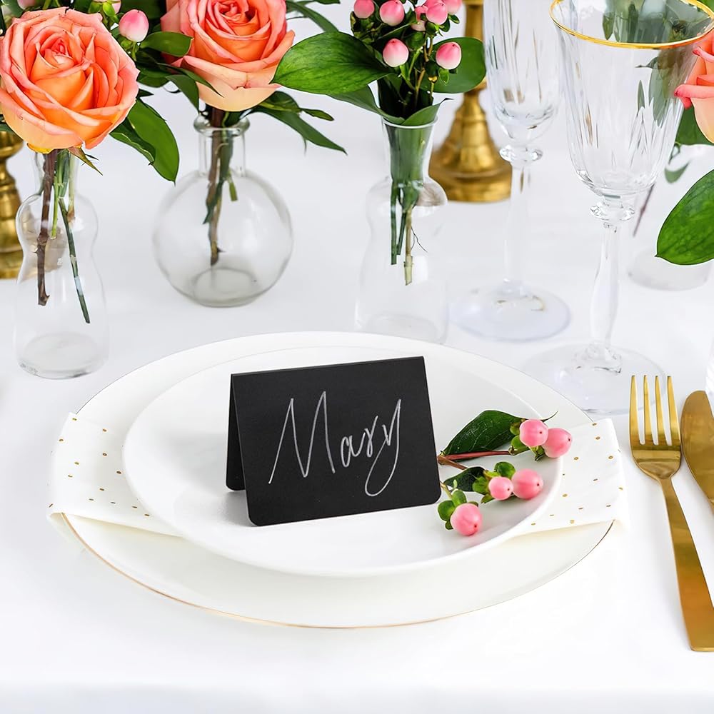 متعددة الوظائف: لافتات السبورة السوداء الصغيرة المصنوعة من مادة PVC مناسبة لعدة مناسبات سواء قمت بوضع علامة على الرقم والاسم كبطاقة طاولة في الحفلة أو استخدمتها كعلامة طعام في المخبز أو المقهى، فهذه اللافتات هي إضافة رائعة