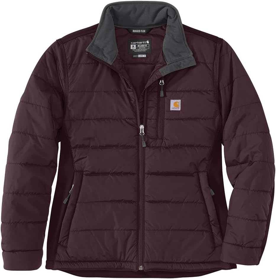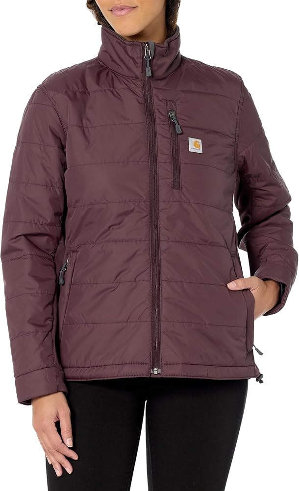 Stay equipped for cool, wet weather. This women's lightweight Carhartt jacket is water-repellent, windproof, and insulated for extra warmth. Made to move, with a relaxed fit and built-in flex where you need it most. Featuring Cordura® for added durability and multiple pockets for essentials.
