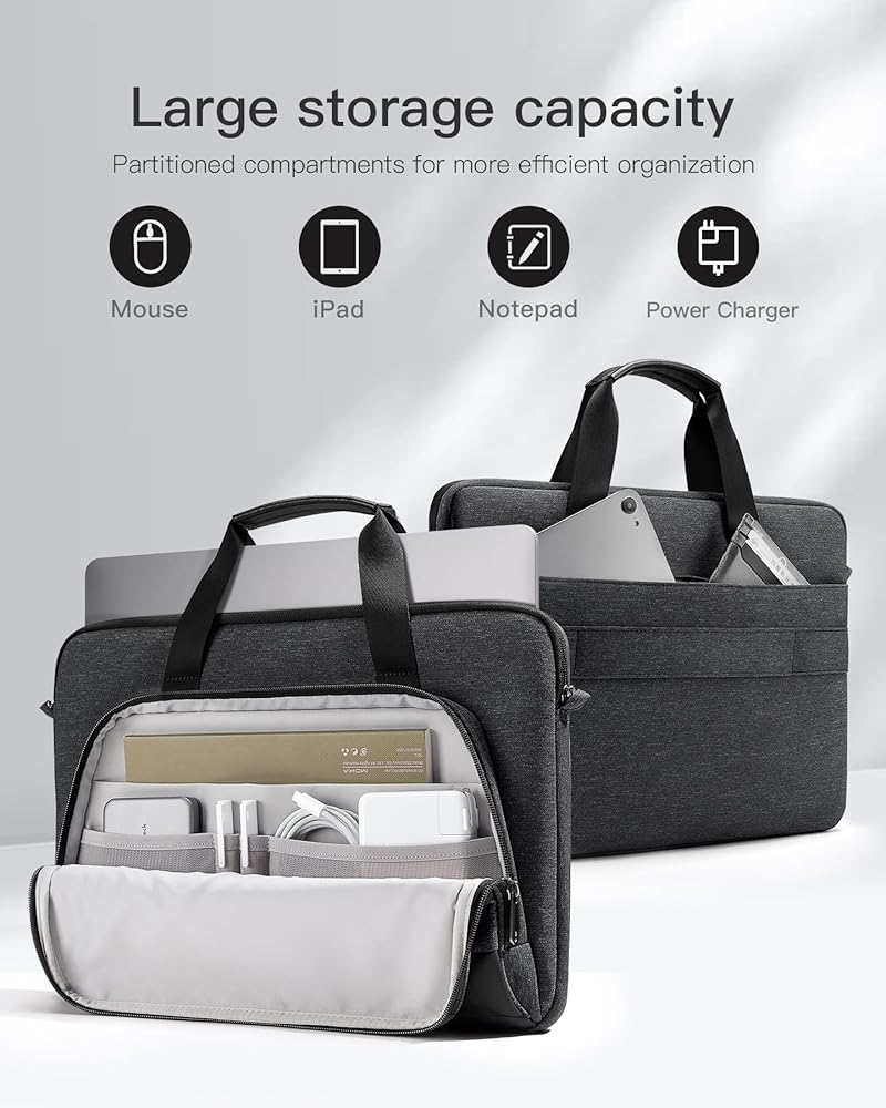 توافق واسع: الأبعاد الخارجية: 40 × 29 × 5.5 سم (15.75 × 11.42 × 2.17 بوصة)، الأبعاد الداخلية: 37.5 × 25.8 × 2.5 سم (14.76 × 10.16 × 0.98 بوصة). تتوافق حقيبة اليد هذه مع معظم أجهزة الكمبيوتر المحمولة مقاس 15 إلى 15.6 بوصة، مثل Dell Inspiron 15 3000 وAcer Aspire ES1 وV15 وASUS Vivobook S15 وDell New Latitude 15 5000 وHP ENVY-15z وLenovo Thinkpad وما إلى ذلك. يرجى ملاحظة: إنها أيضًا كبير لجهاز MacBook Pro مقاس 15 إلى 16 بوصة.