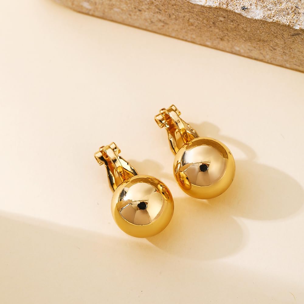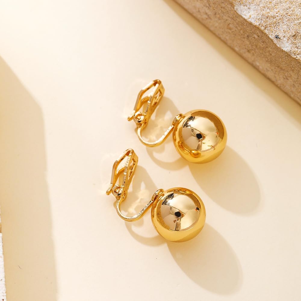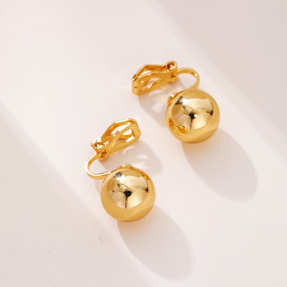 مشبك كرة ذهبية على أقراط للنساء 12 ملم أقراط مشبكية من الخرز غير ثقب
