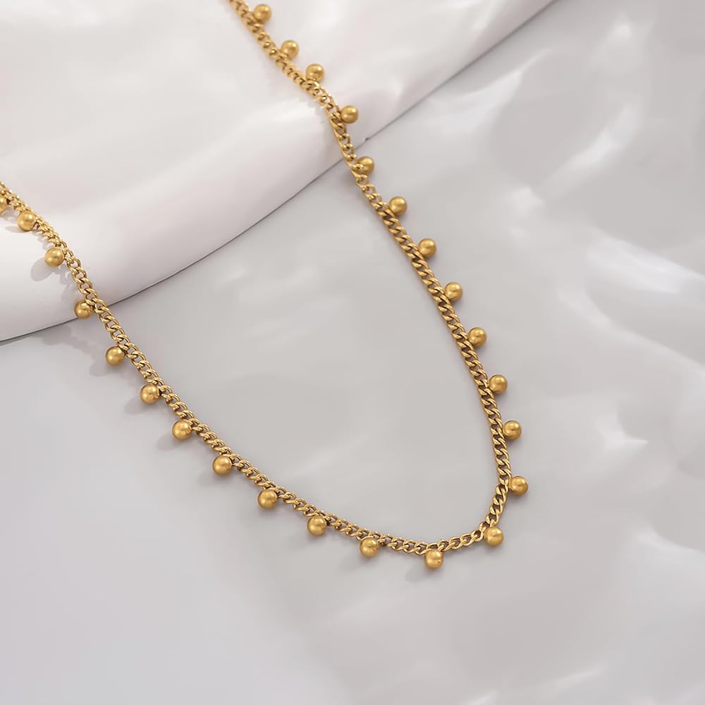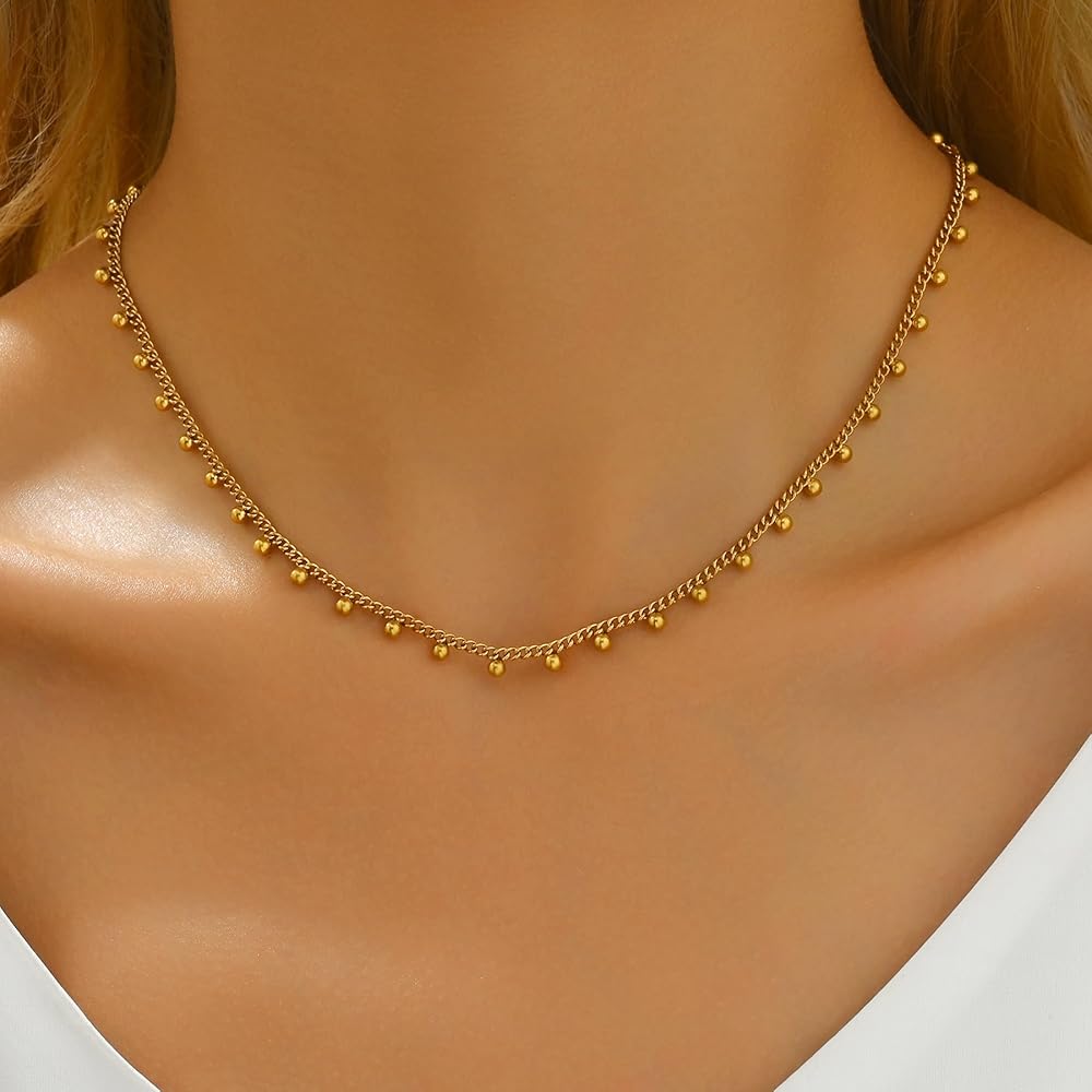 خامة فاخرة: القلادة الذهبية الخاصة بنا مصنوعة بدقة باستخدام الفولاذ المقاوم للصدأ المطلي بالذهب عيار 18 قيراط، والذي يبدو أنيقًا. تحافظ هذه المادة على قلادة الذهب لامعة ومقاومة للبهتان