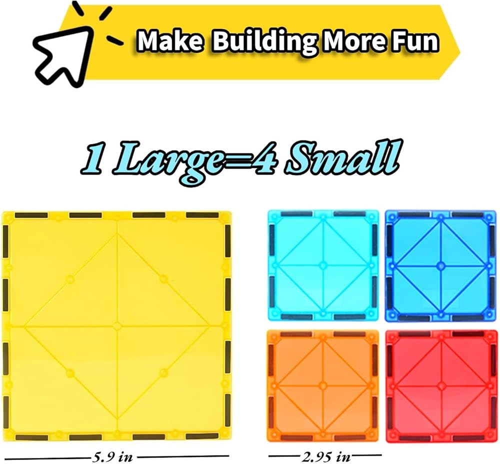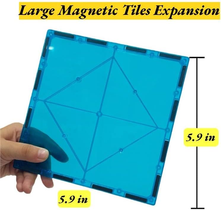 Bang for the Buck: Our magnetic tiles set contains 4 PCS Large Mgnetic Tiles Square Shape. Every piece is self-produced and checked one by one. Perfect gift idea for children aged 3-9.