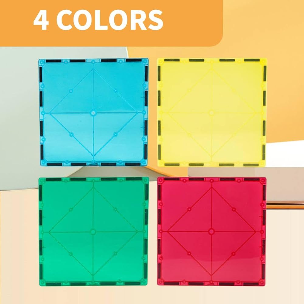 Looking for an engaging and educational toy that's both fun and challenging? Our 4-piece magnetic tile set just might be the perfect choice. Featuring large square shapes, these colorful building blocks allow kids to create incredible structures using the power of magnetism. With the included playboard, children can unleash their creativity and design 3D structures or flat patterns in a limitless number of combinations. Not only does this toy provide endless hours of entertainment, but it also helps to develop important skills such as problem-solving, spatial awareness, and hand-eye coordination. Made from non-toxic materials, our magnet building block set is safe for kids of all ages. And when playtime is over, the tiles easily stack together for convenient storage. Whether for at-home play or in the classroom, our STEM learning kit offers a unique and enjoyable way for children to explore science, technology, engineering, and math concepts. So why wait? Order our magnetic tile set today and watch your child's imagination soar!