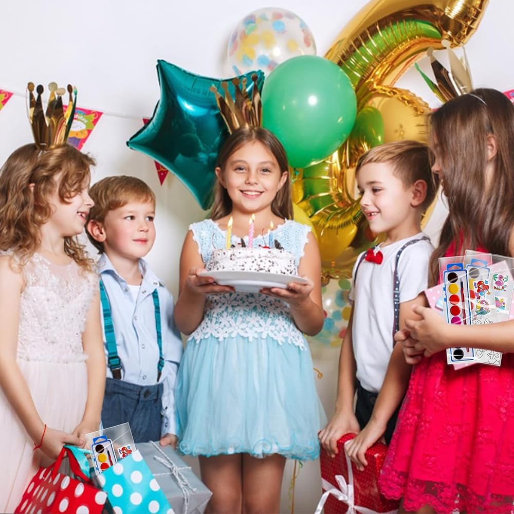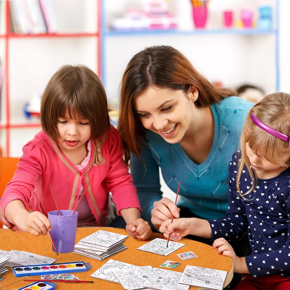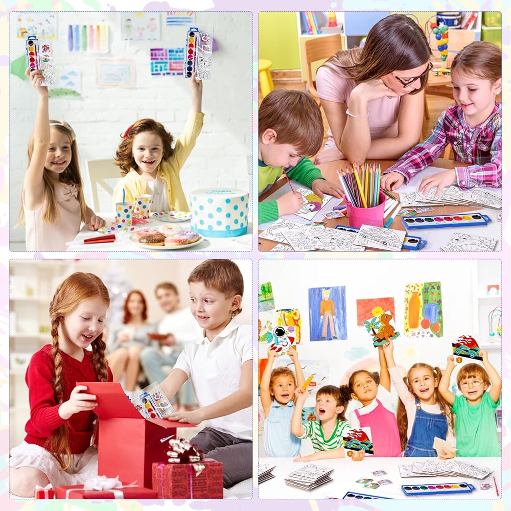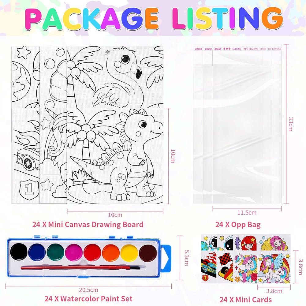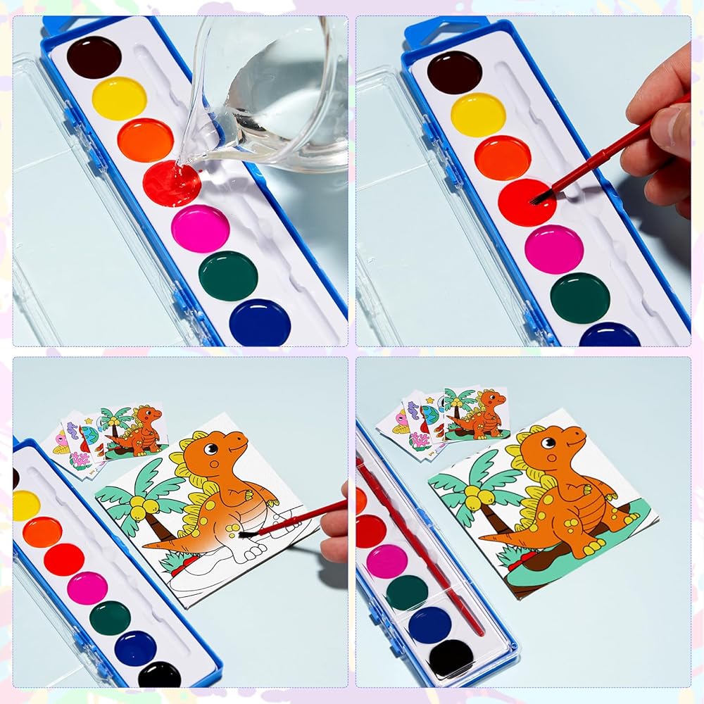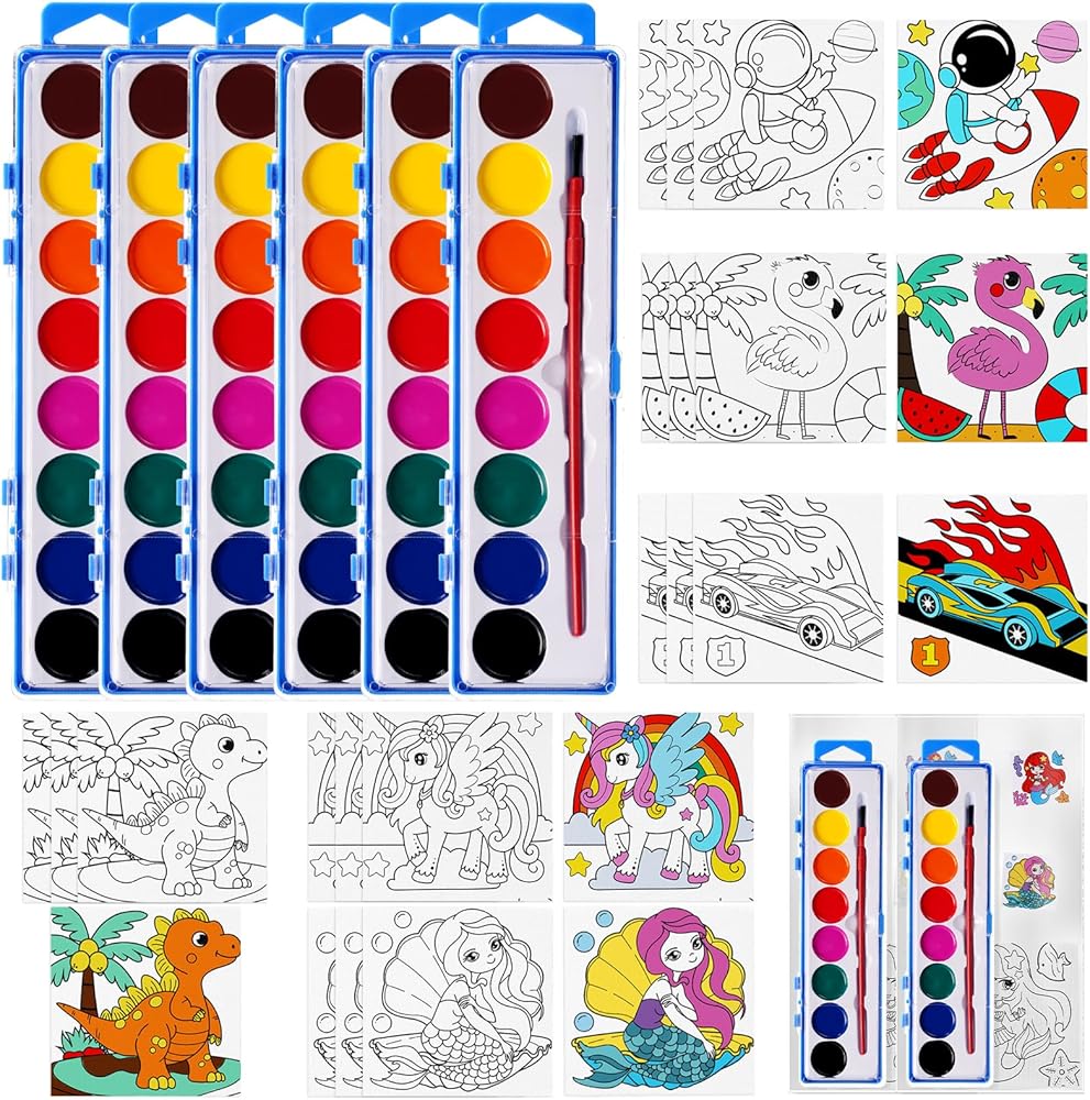 مجموعة لوازم حفلات الرسم: تتضمن مجموعة الطلاء بالألوان المائية للأطفال 18x طلاء بألوان مائية مع فرش، و18x قماشًا صغيرًا مع حامل (36 بطاقة ألوان مرجعية)، و54x بطاقة تلوين بألوان مائية، 18* بطاقات هدايا، 18x فرشاة طلاء، 18 ملصق طلاء فني، 18x سلسلة مفاتيح و 36x حقيبة شفافة، مثالية للحفلات الفنية أو أنشطة الفصل الدراسي.
