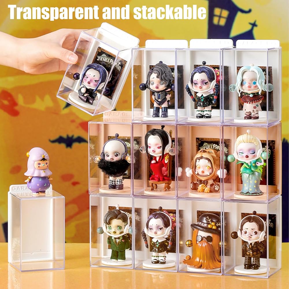 Figures Display Box, Clear Figures Display Case With ID Card Slot, Stackable Doll Display Stand for Pop Mart Lego Collectibles Action Figures