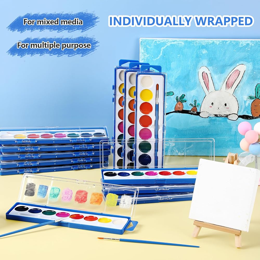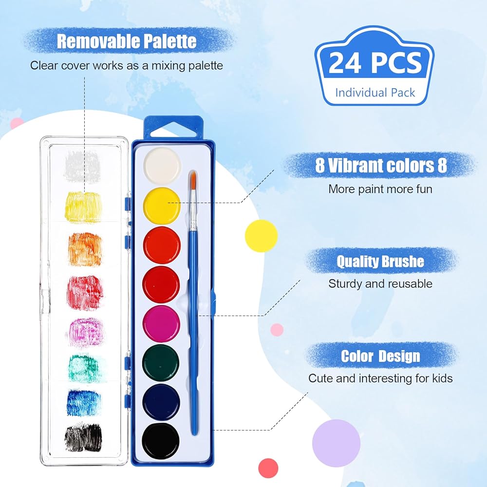 Each set of watercolor paints is individually packaged in a portable box with a paintbrush inside. Just a little water, you can start painting. The lid of the plastic box is removable and can be applied as a palette.
