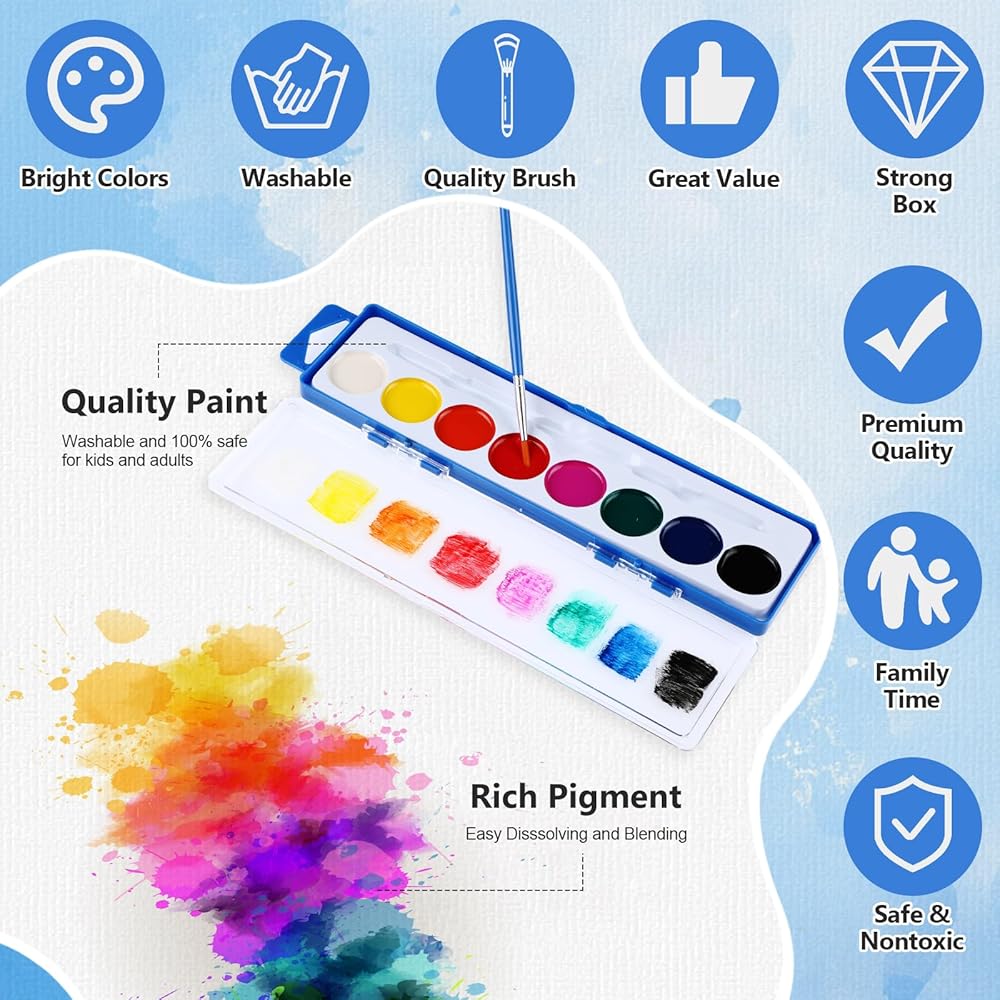 The kid's watercolor paint set is made of quality materials, safe and non toxic, and friendly to children. Let you rest assured to create beautiful paintings and colorful craft projects with your children.