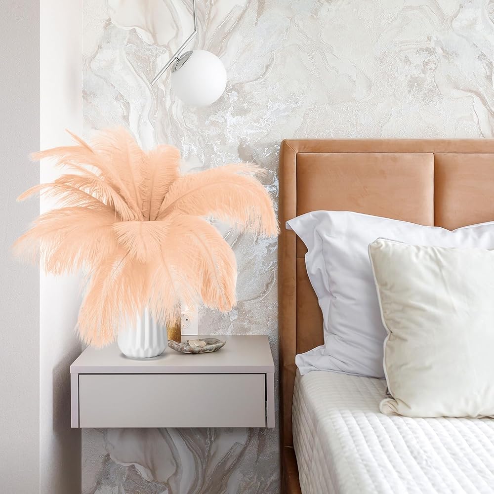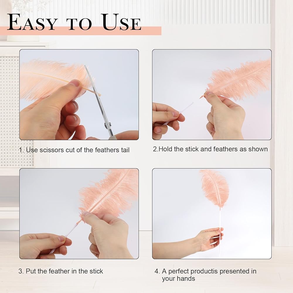 ريش ريش النعام الطبيعي الأصلي: هذا ريش حقيقي، كل ريش فريد من نوعه وقد يختلف الشكل. جميع الريش مفقود بشكل طبيعي. لقد تم تنظيف جميع عناصر الريش لدينا بشكل احترافي، وطهيها على البخار إلى حد الكمال.