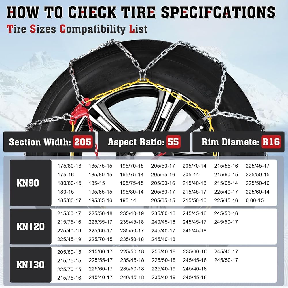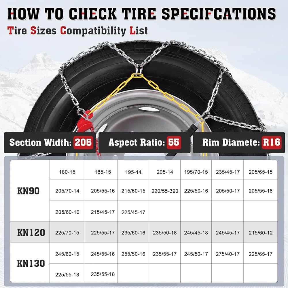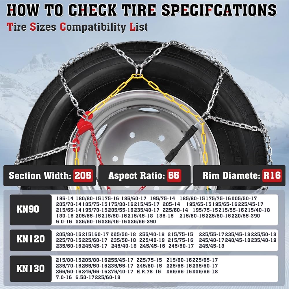 𝐁𝐔𝐘 𝐖𝐈𝐓𝐇 𝐂𝐎𝐍𝐅𝐈𝐃𝐄𝐍𝐂𝐄: يرجى التحقق بعناية من المنتج الموجود في الصورة لمعرفة ما إذا كان يطابق إطارات سيارتك. نحن نؤمن بأن منتجنا آمن وفعال لمنع الانزلاق طالما تم تركيبه بشكل صحيح على سيارتك. إذا كانت هناك أي مشكلة مع المنتج، فلا تتردد في الاتصال بنا للاستبدال. سنبذل قصارى جهدنا لمساعدتك. نتمنى لكم رحلات آمنة!