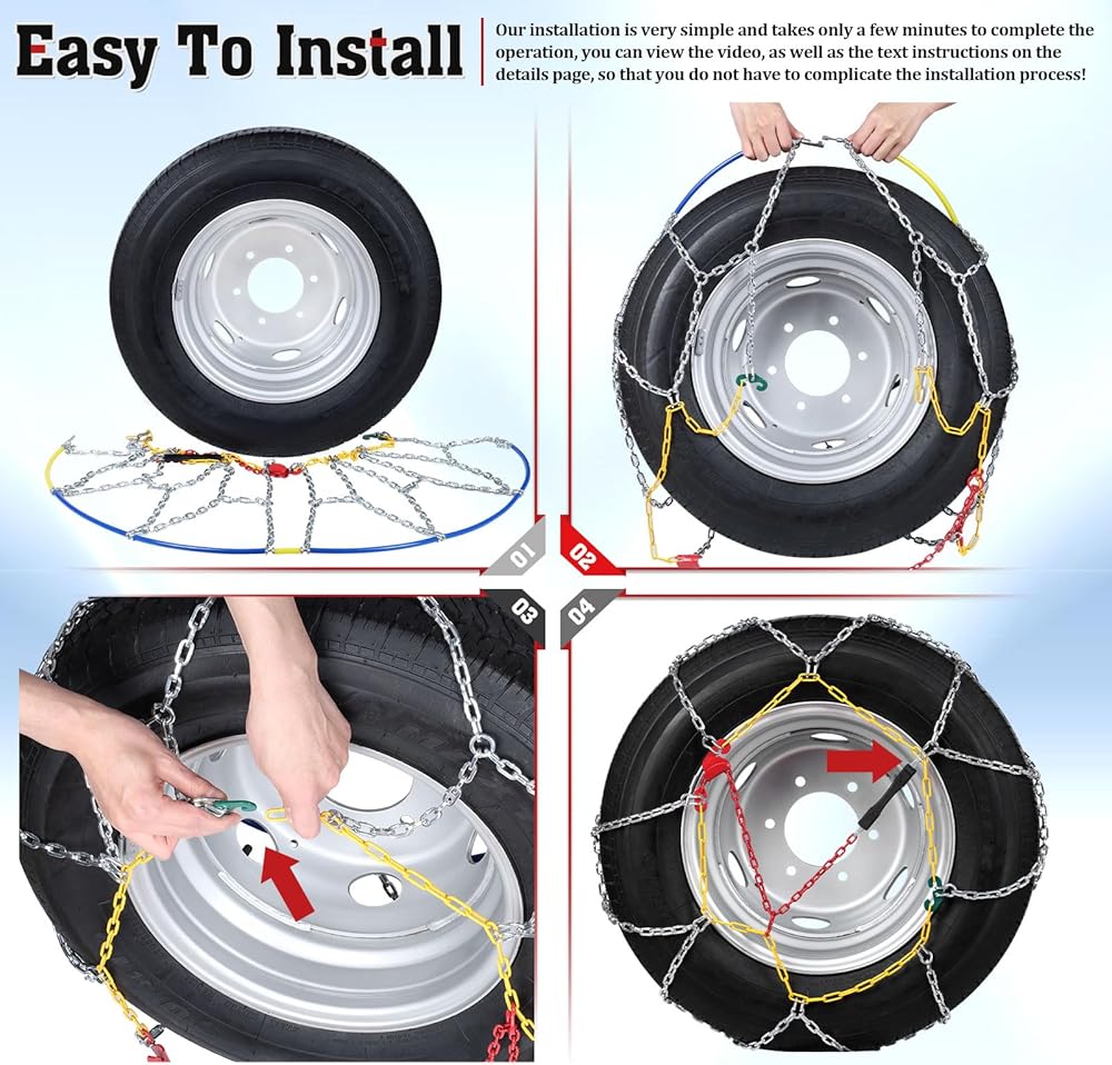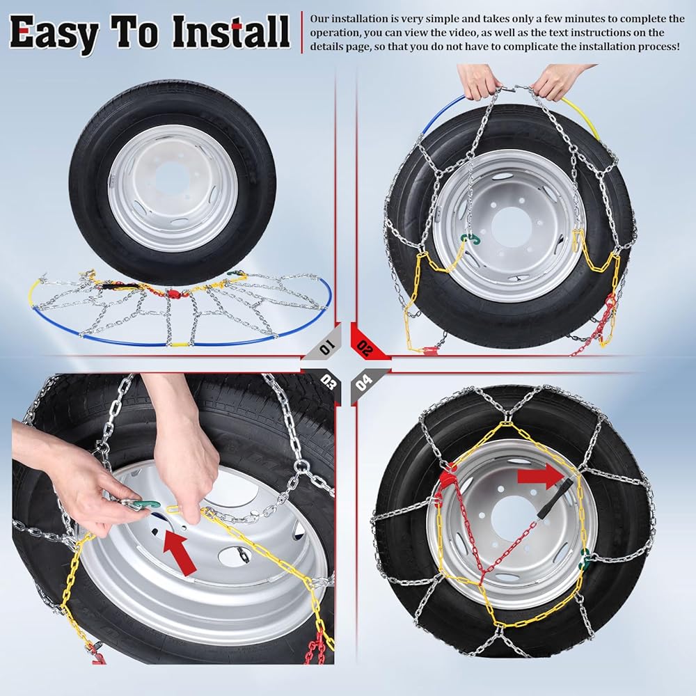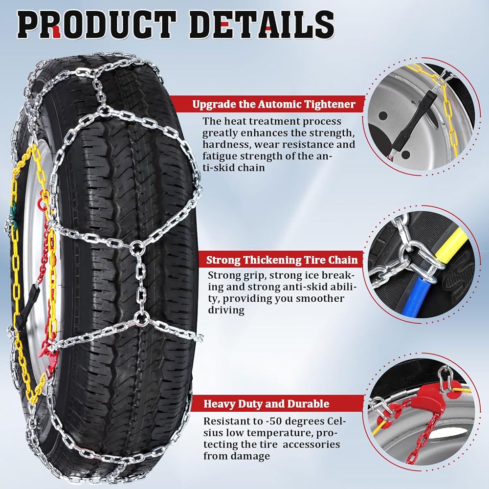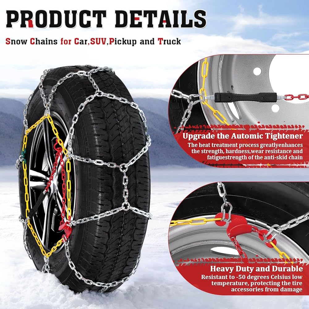 𝐇𝐈𝐆𝐇 𝐐𝐔𝐀𝐋𝐈𝐓𝐘 𝐌𝐀𝐓𝐄𝐑𝐈𝐀𝐋: سلاسل انزلاق الإطارات مصنوعة من الفولاذ عالي الجودة من سبائك المنغنيز. يمكن لهذه المادة أن تتحمل الطقس البارد الشديد دون الإضرار بالإطارات، وتضمن مقاومة ممتازة للتآكل وطول العمر حتى في أقسى ظروف الشتاء. يتميز هيكل السلسلة ذو الشكل الماسي الخاص بنا بخصائص قوية مضادة للانزلاق وهو مثالي للقيادة في حالات الطوارئ على الثلج والجليد. إنه يعزز الإمساك بشكل فعال ويخترق الجليد بسرعة، مما يحسن بشكل كبير من سلامة قيادتك.
